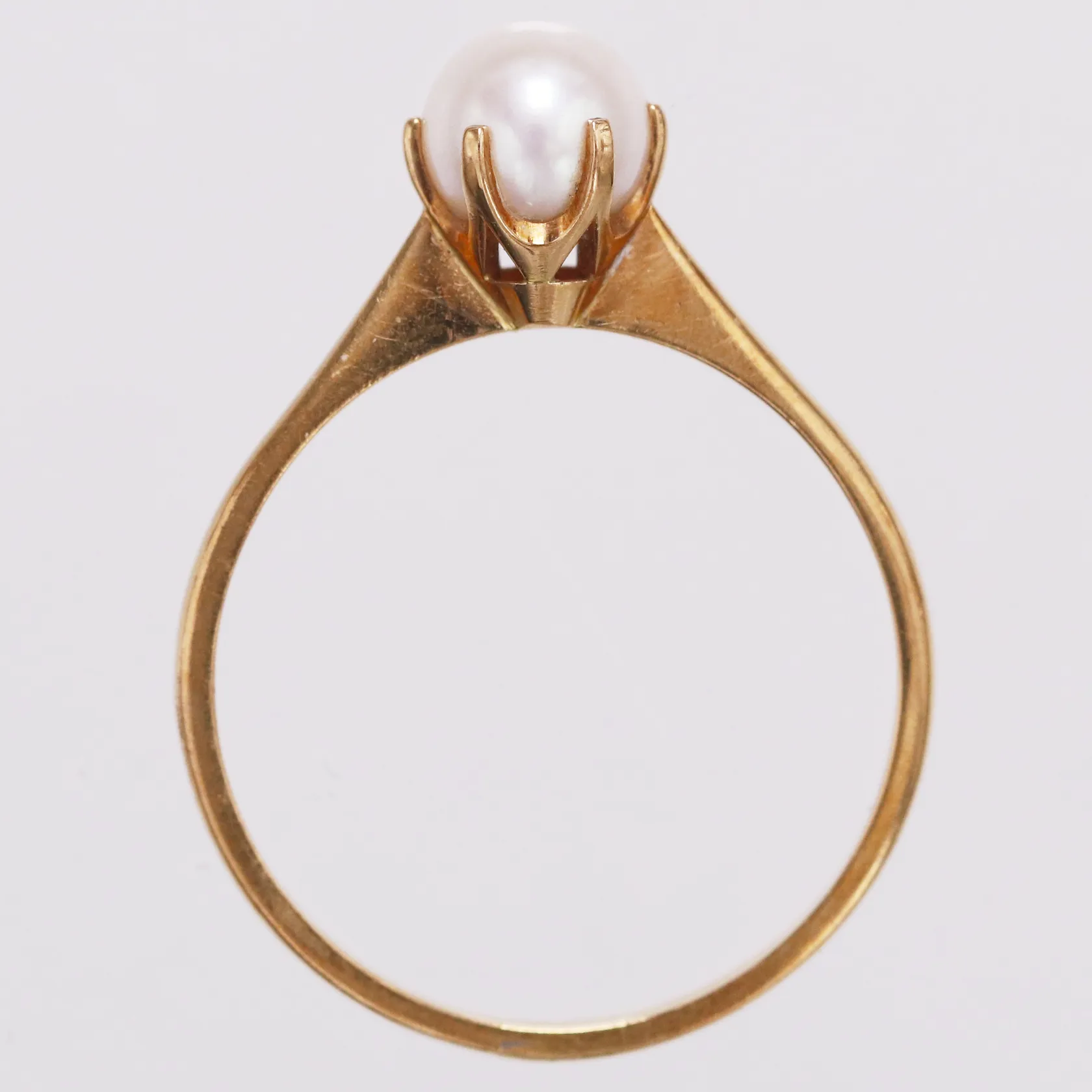 Ring odlad pärla stl:19½ bredd 1,7-6,7mm Guldfynd år 1986, 18K Vikt: 2,7 g.