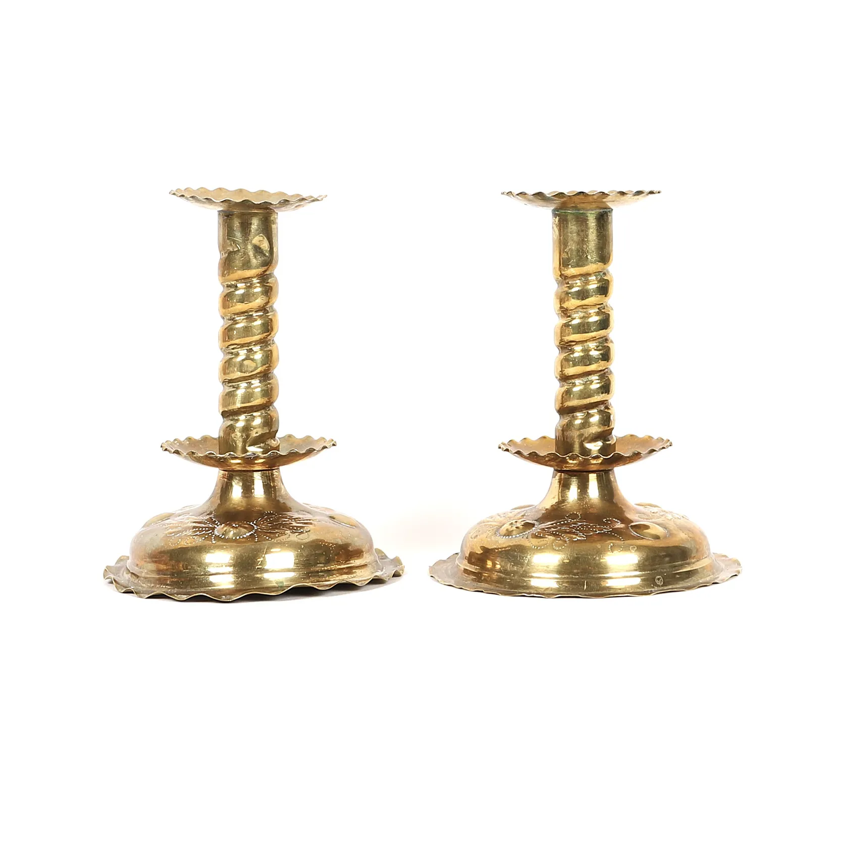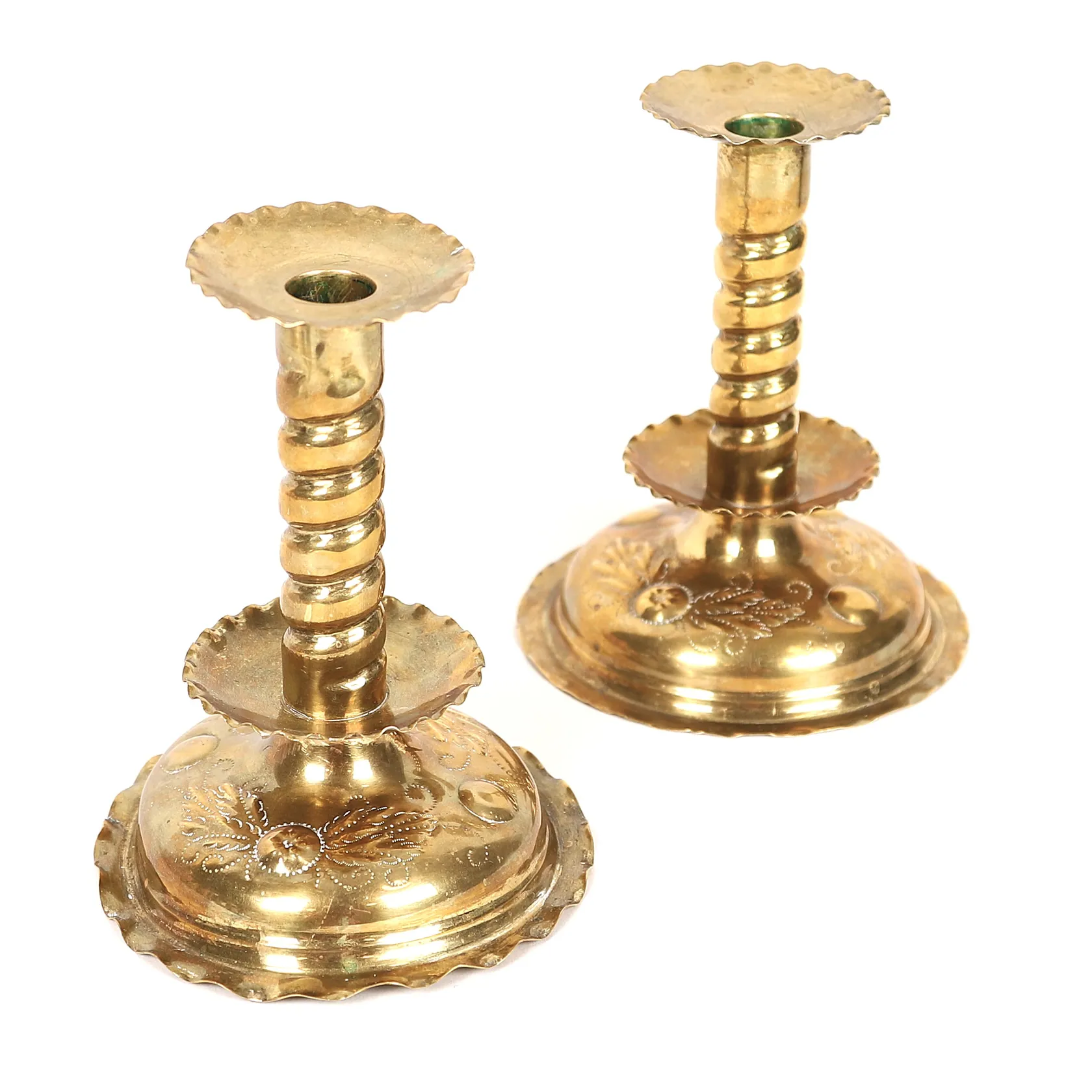 Ett par ljusstakar, barockstil, mässing, höjd 16cm, slitage, bucklor.