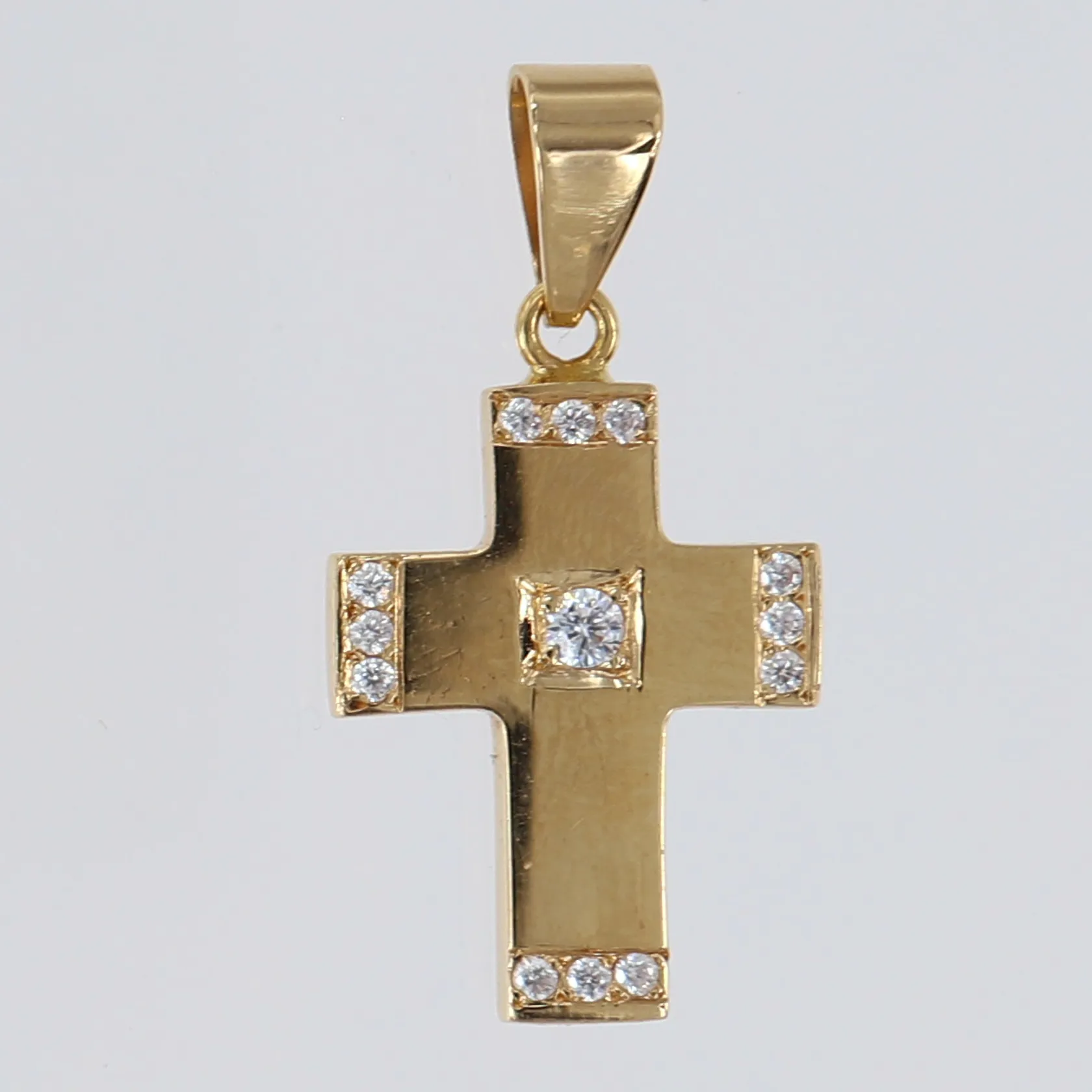 Hänge Kors med vita stenar, 26x14mm ink ögla, 18K. Vikt: 2,3 g.