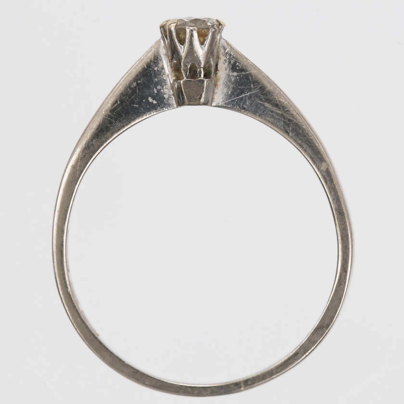 Ring med diamant 1 x ca 0,20ct enligt gravyr, stl: 17½, bredd: 2 - 4 mm, 18K vitguld. Vikt: 2,5 g.