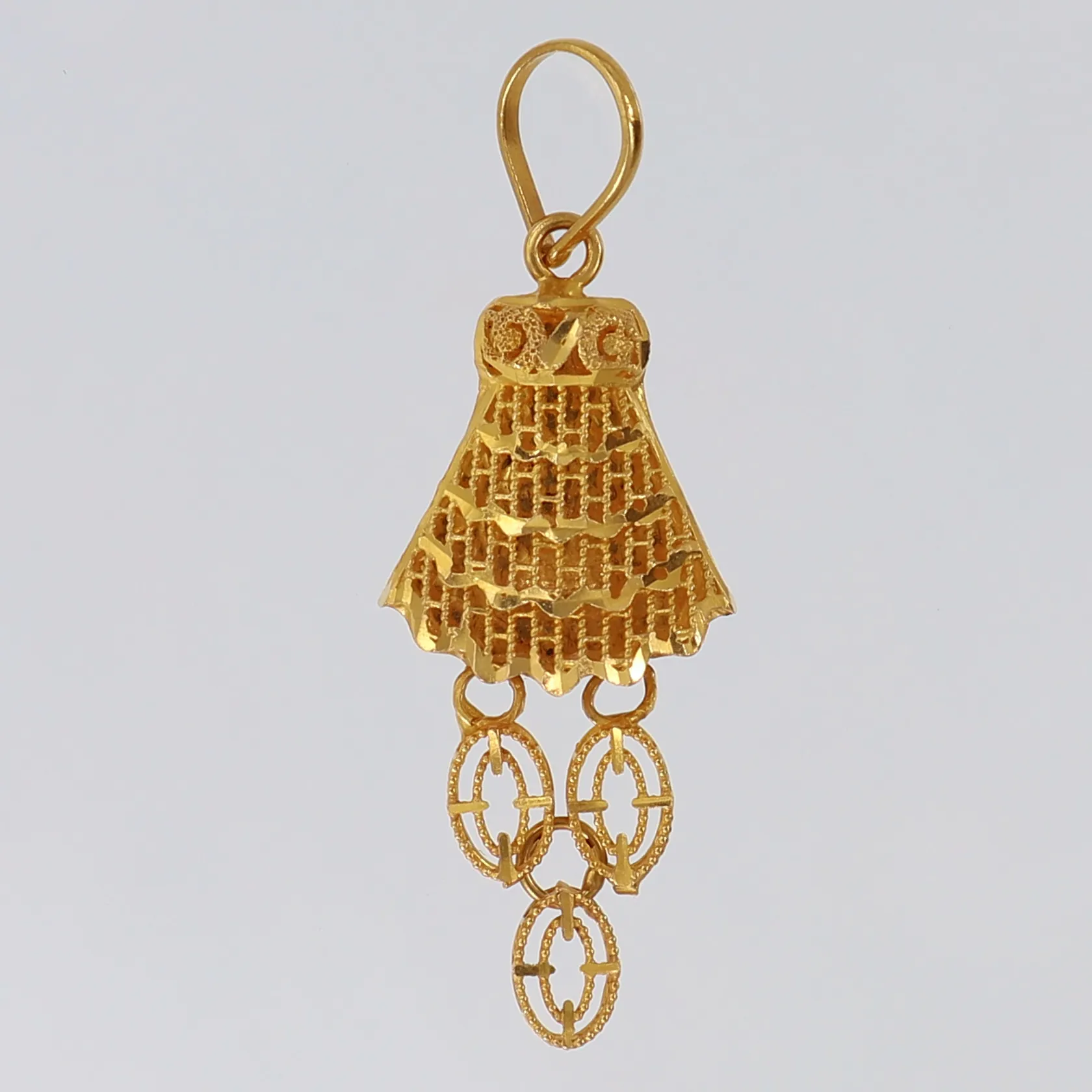 Hänge med genombruten dekor, 42x15mm ink ögla, 21K. Vikt: 5,3 g.