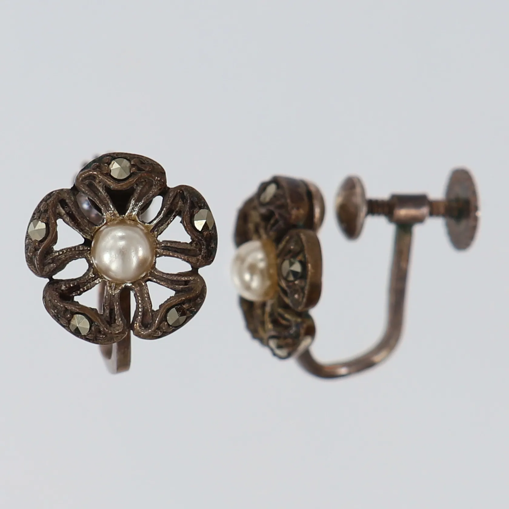 Ett par örhängen med plastpärlor samt markasiter, Ø11mm, skruv lås, 835/1000 silver Vikt: 3,1 g.