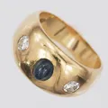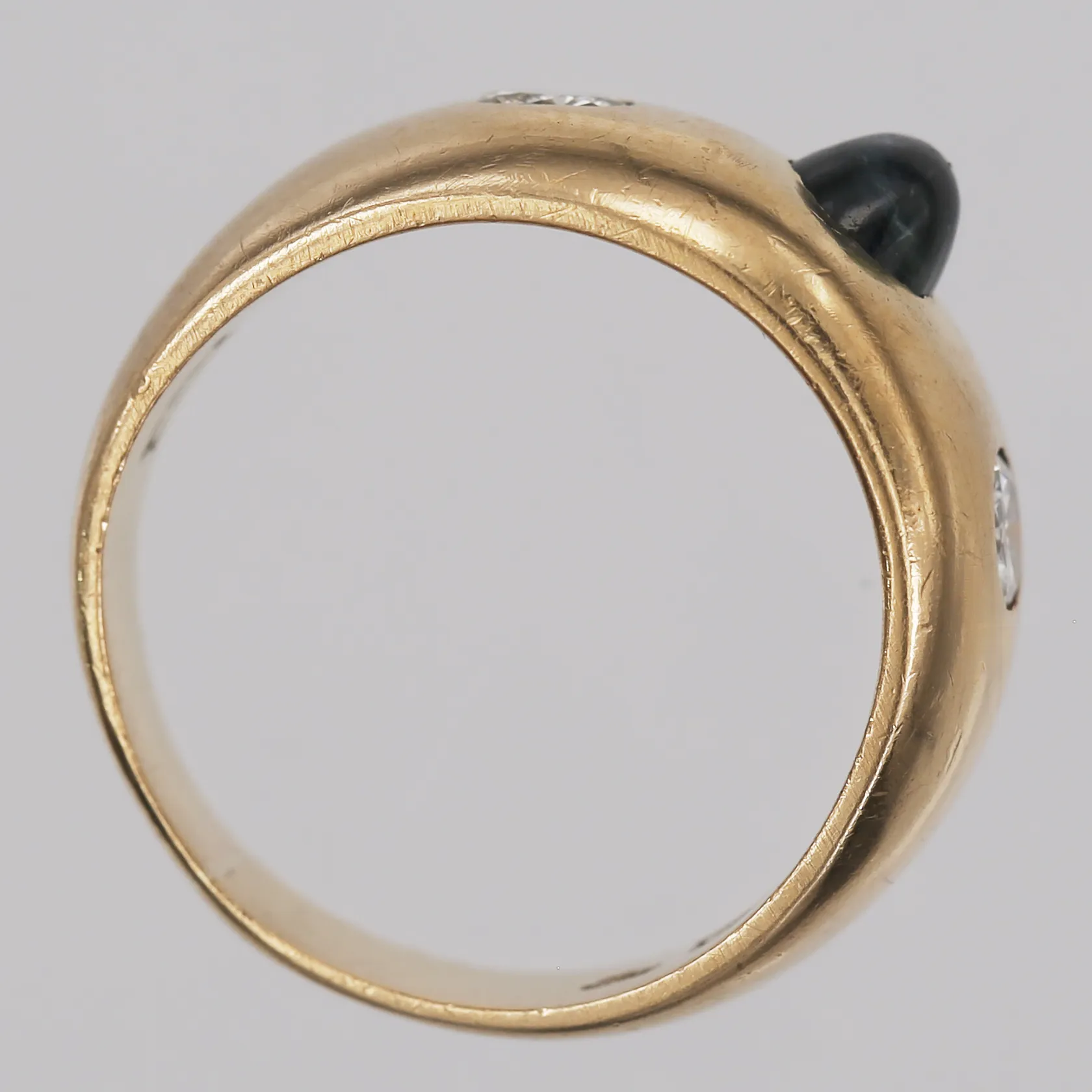 Lordring med cabochonslipad safir samt briljantslipade diamanter 2 x ca 0,15ct, kvalitet ca W-TCr(H-I)/VS-SI, stl: 16, 18K guld Vikt: 7,8 g.