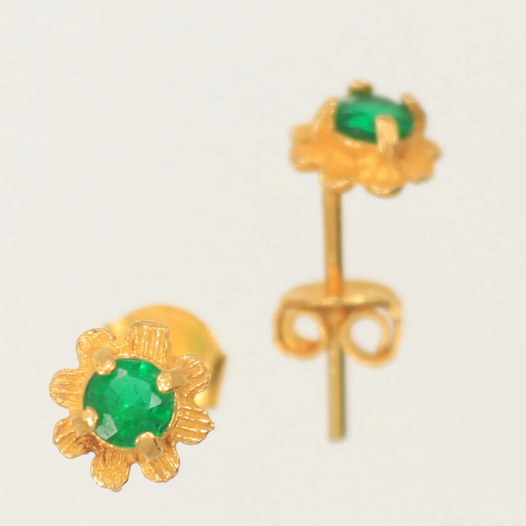 Ett par örhängen med gröna stenar 6,5x6,5mm 21K Vikt: 1,3 g.