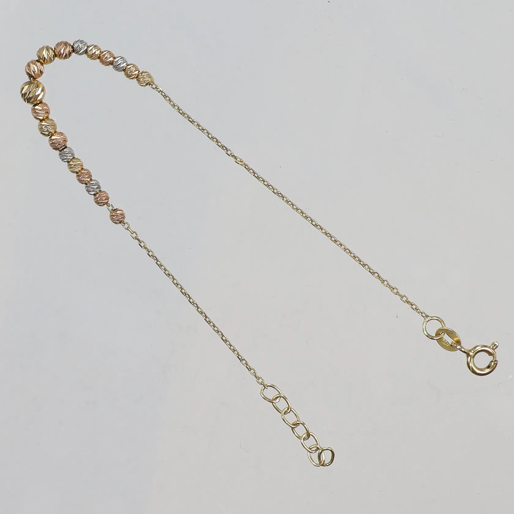 Armband med kulor, längd 17cm, bredd 1-4mm, trefärgad, 18K Vikt: 1,8 g.