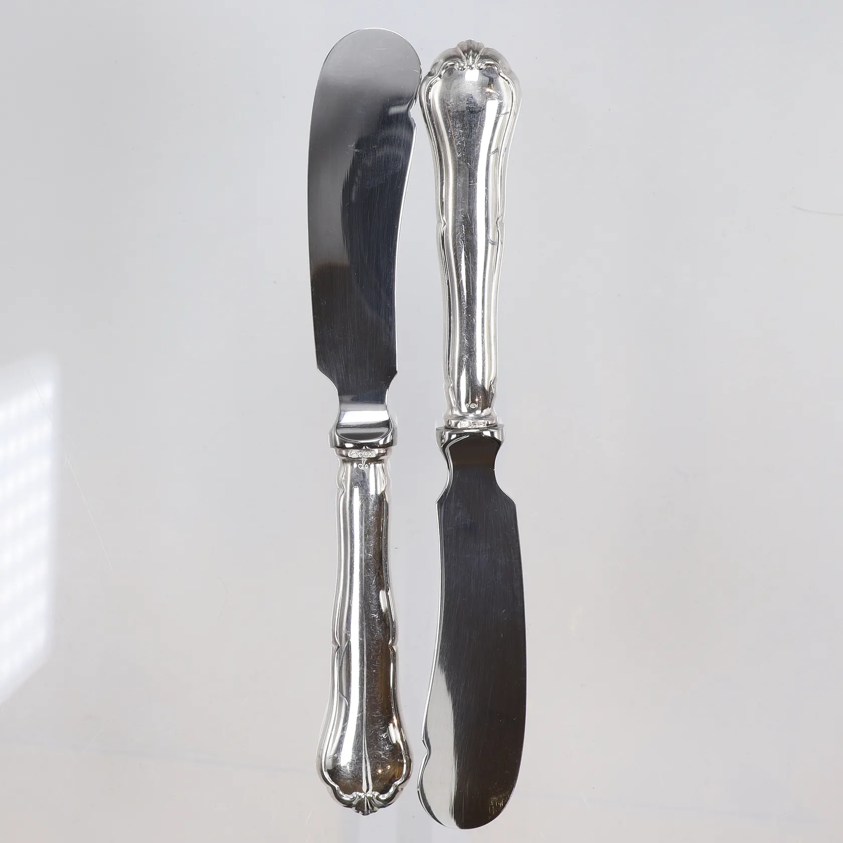2st Smörknivar modell Viktoria längd 16,5cm, blad i rostfritt stål silver 830/1000 Vikt: 76,2 g.