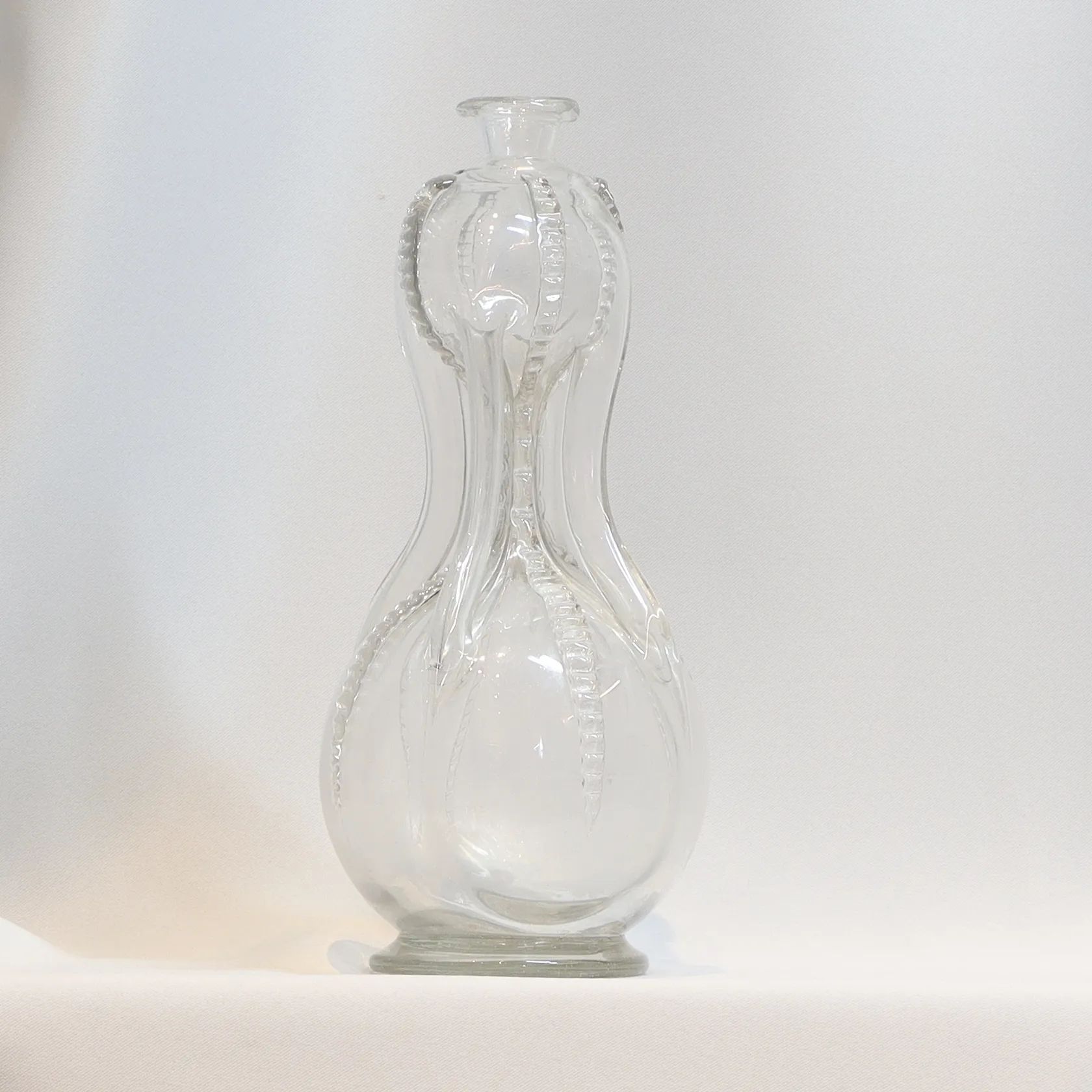 Kluckflask, höjd 24cm, troligen 1800-tal, beläggning på flaskbotten