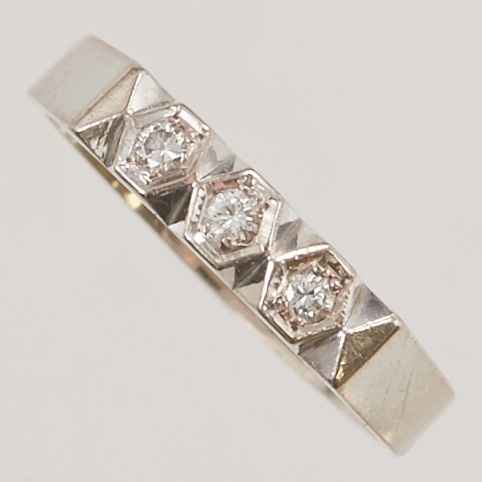 Ring diamanter 3x ca 0,03ct, Ø16¾, bredd:3mm, vitguld, 18K 3,7g. Vikt: 3,7 g.