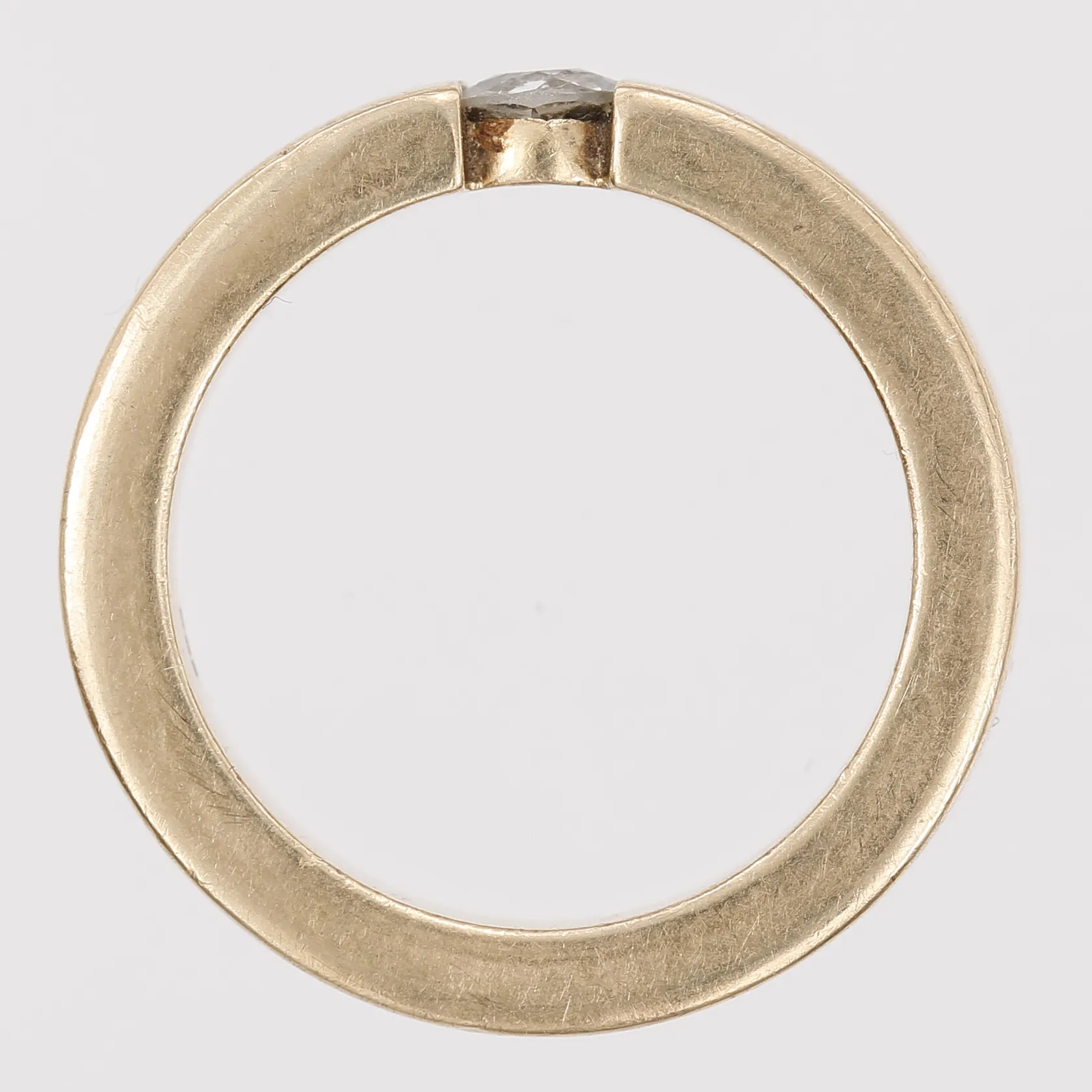 Ring med antikslipad diamant ca 0,27ct, stl: 16½, bredd: 4mm, bruksslitage,18K guld. Vikt: 9,7 g.