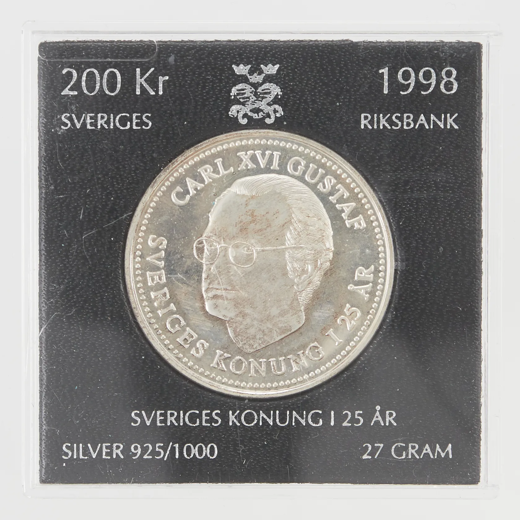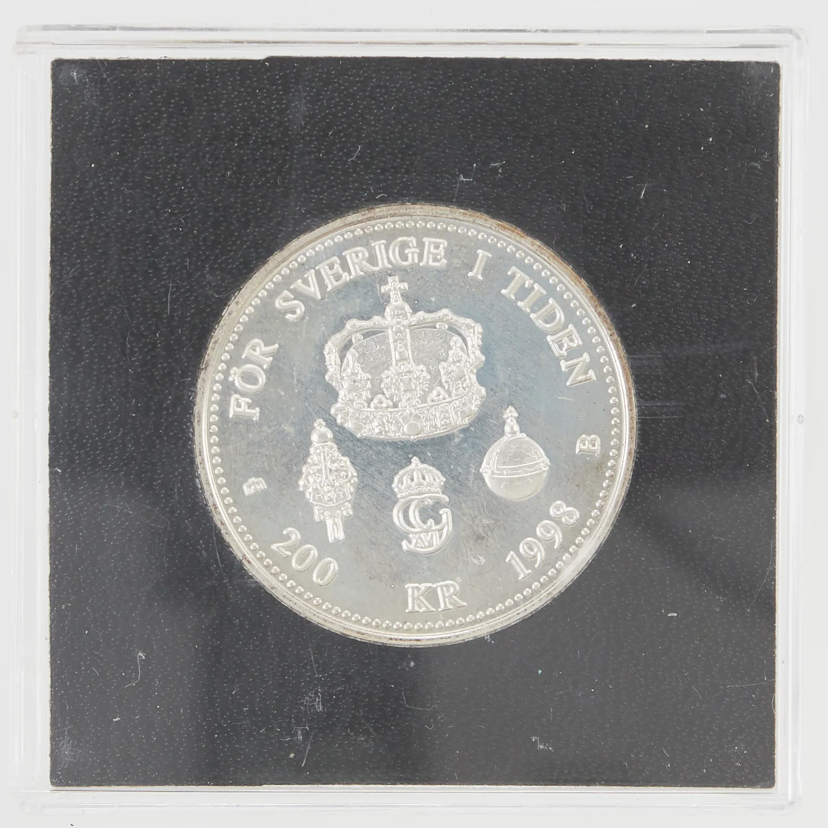 Minnesmynt, nominellt värde 200kr, 1998, etui, 925/1000 Silver 27g. Vikt: 27 g.