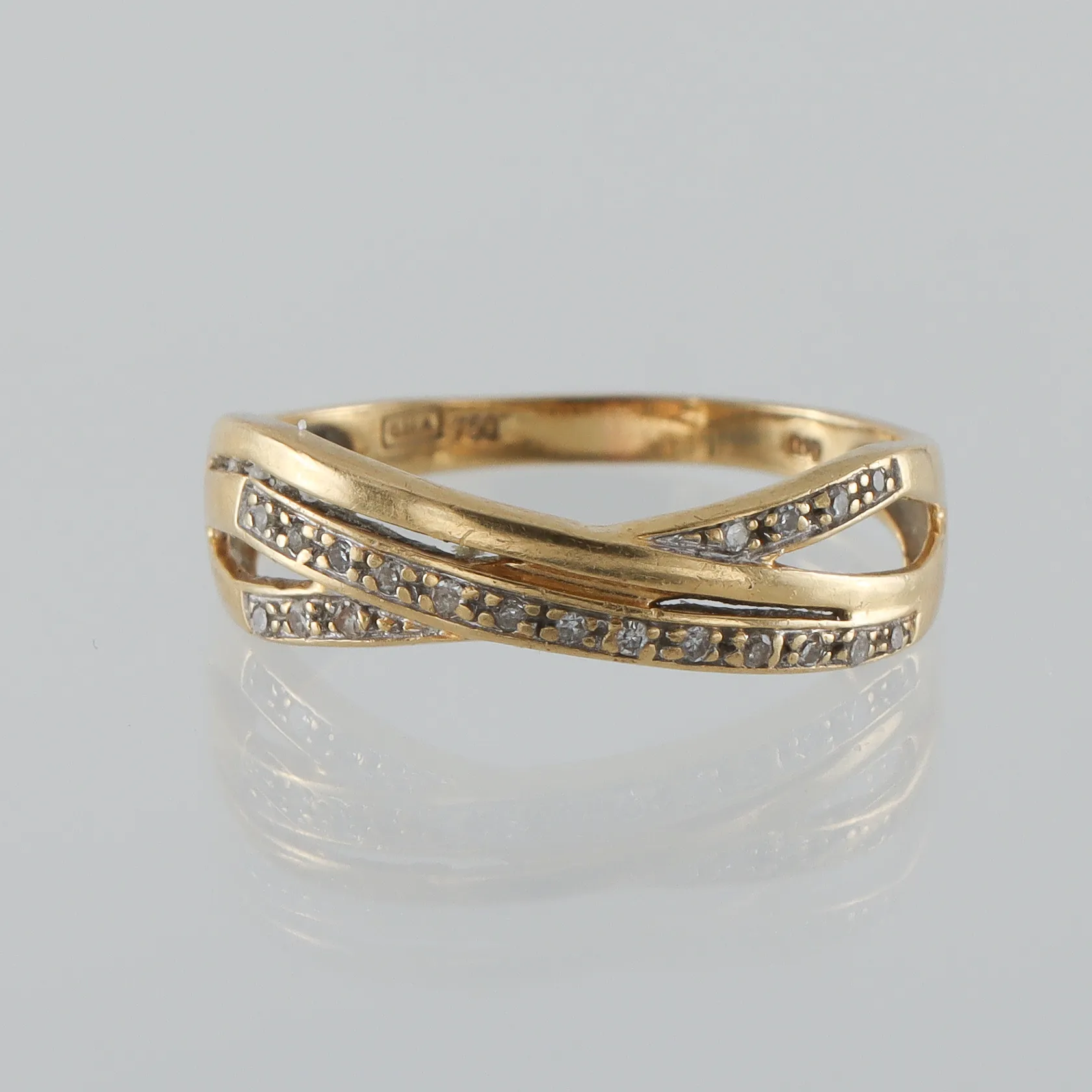 Ring med små diamanter,GHA, stl:18¼, bredd ca 2-6 mm, 18K. Vikt: 2,6 g.