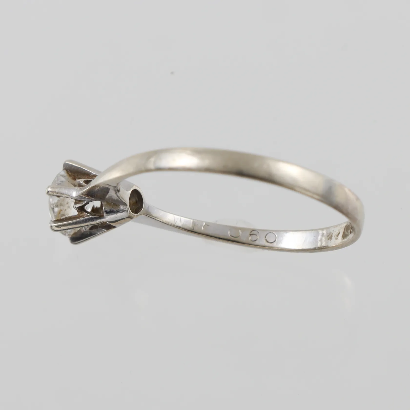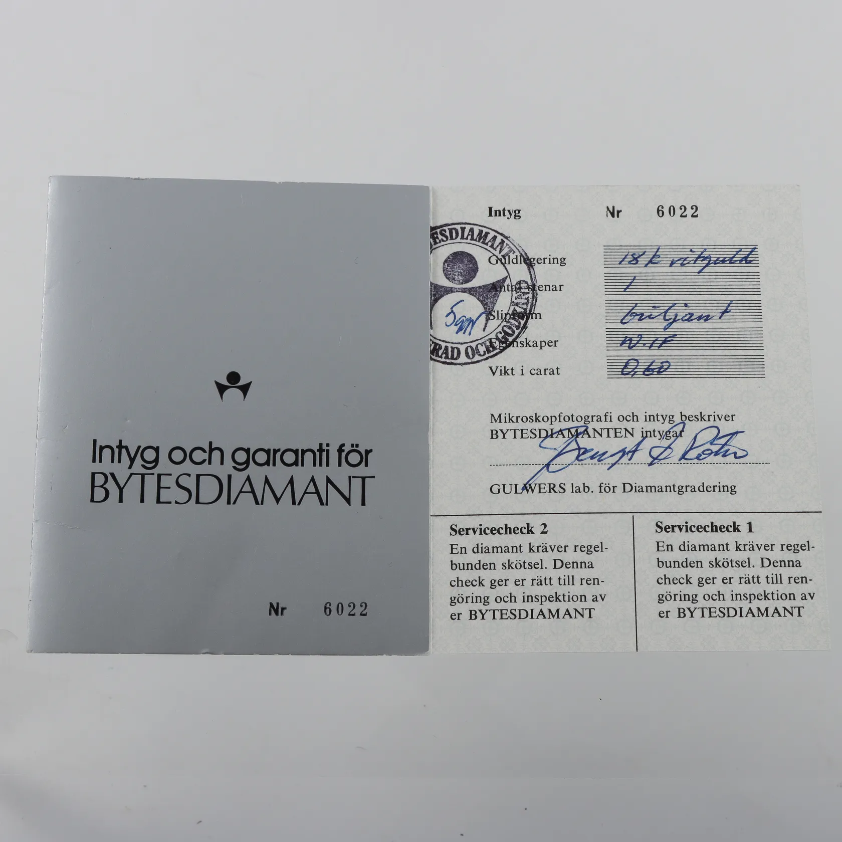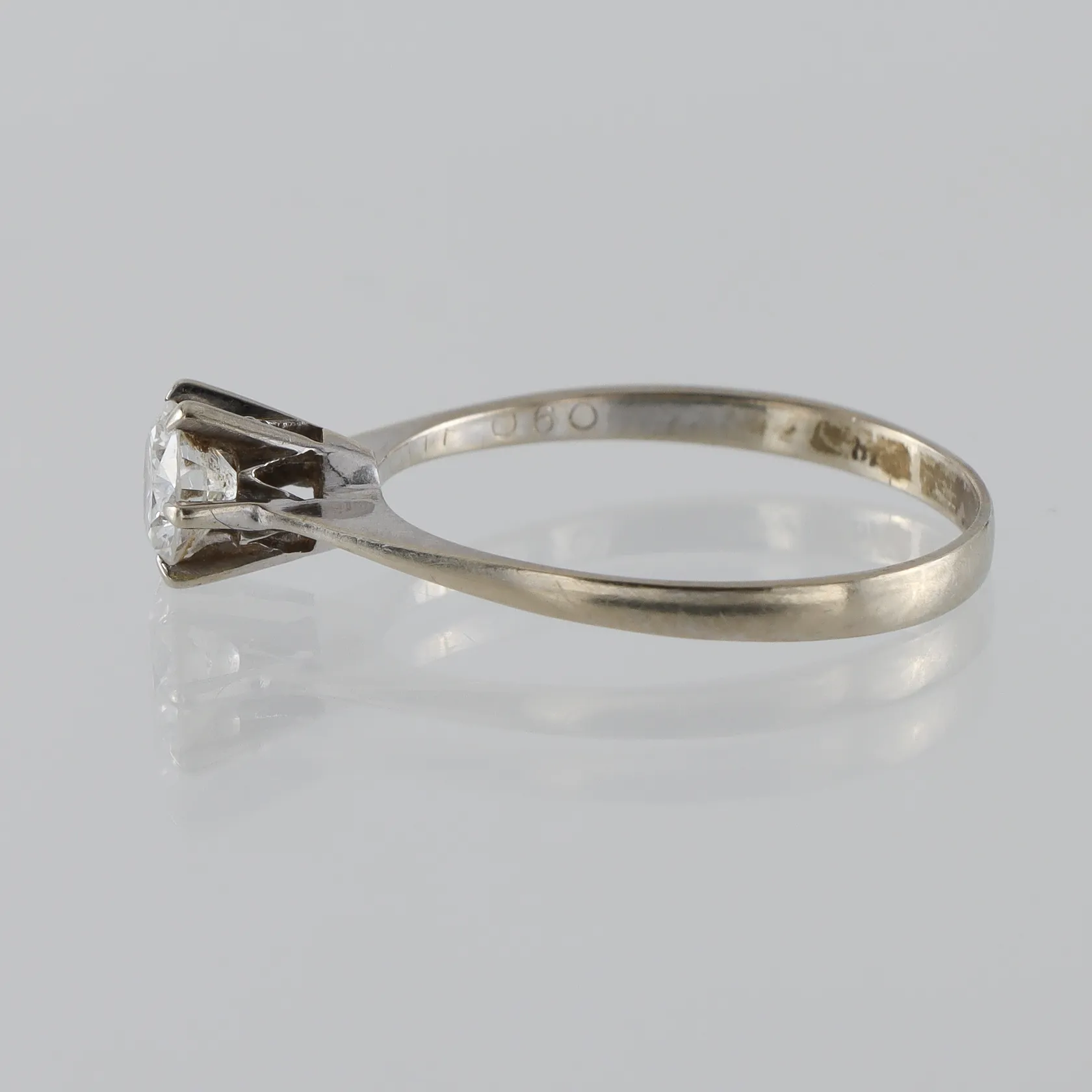 Ring 18k vitguld med solitär naturell diamant på 0.60 ct WIF, stl:19, bredd 2,1-6,1mm, certifikat medföljer. Vikt: 2 g.
