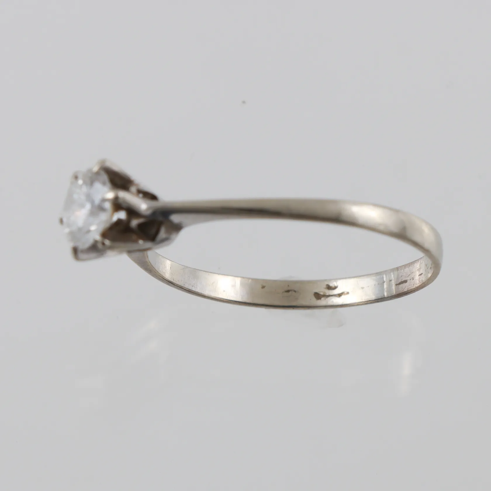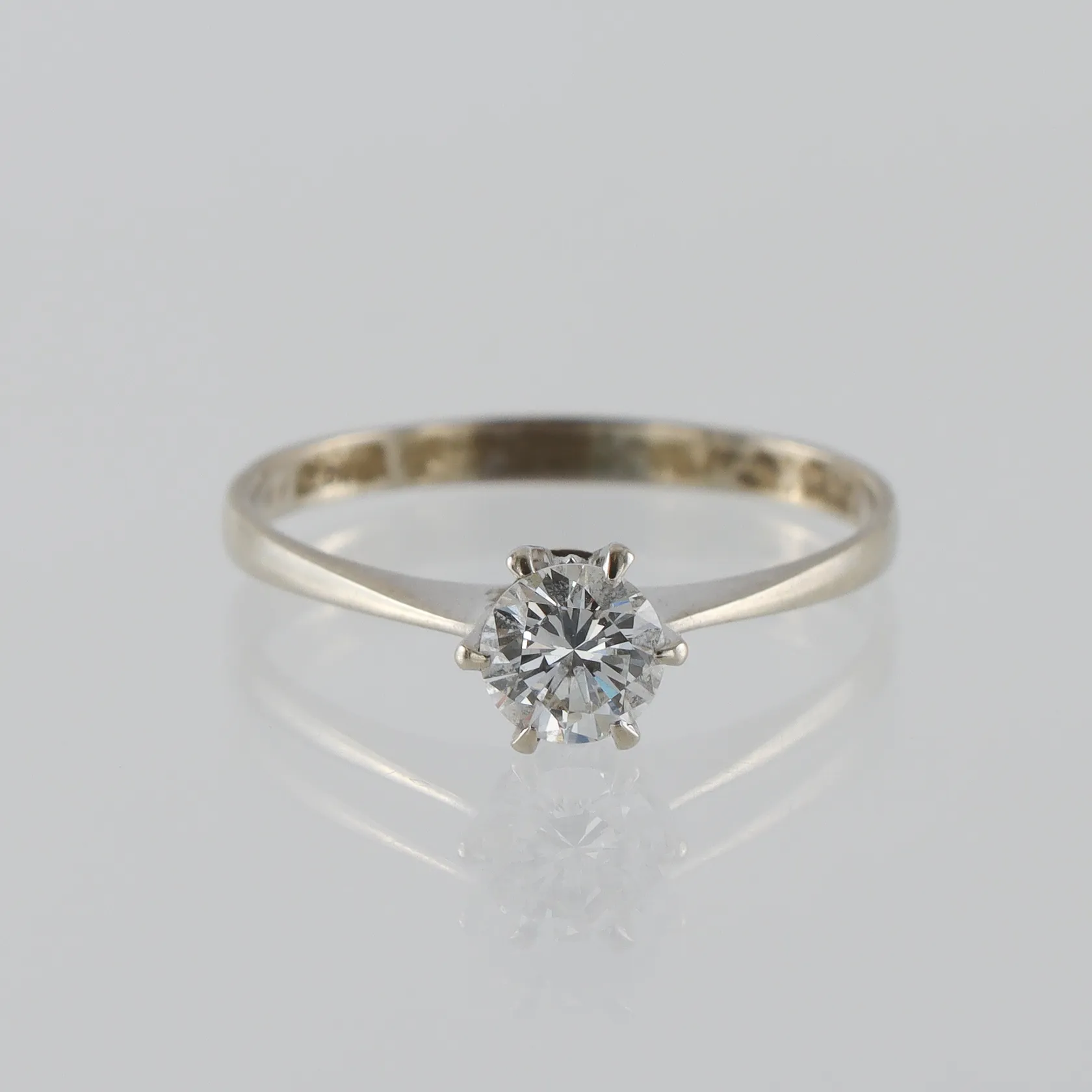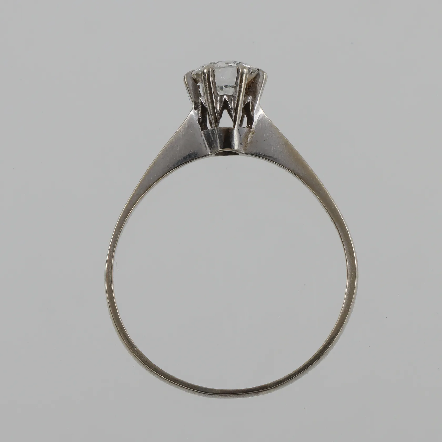 Ring 18k vitguld med solitär naturell diamant på 0.60 ct WIF, stl:19, bredd 2,1-6,1mm, certifikat medföljer. Vikt: 2 g.
