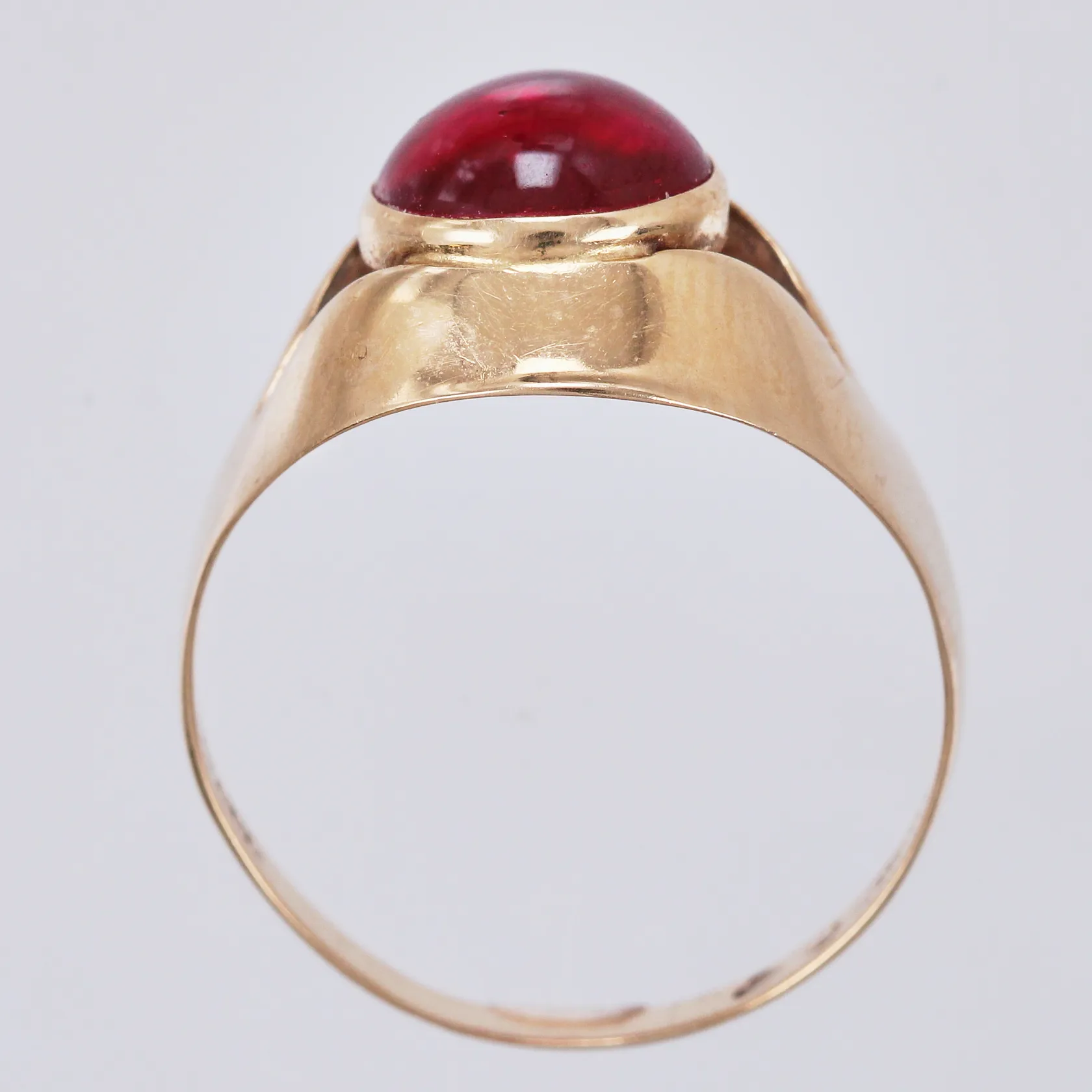 Ring med röd sten stl: ca 17¼ bredd: ca 2-12mm ALTON år 1967 18K bruttovikt Vikt: 2,3 g.