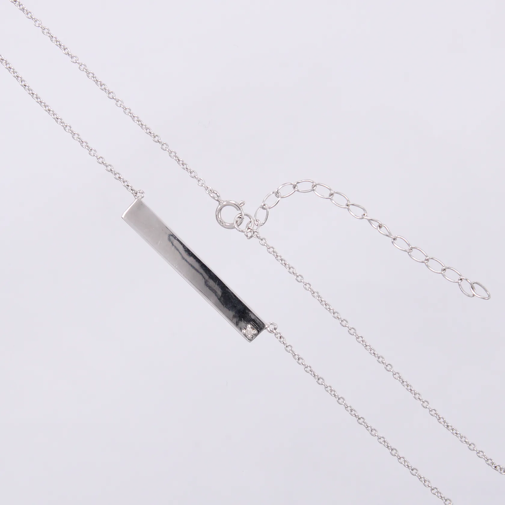 Collier med diamant 1x ca 0,01ct, längd: ca 45,5cm, bredd: ca 1mm, silver 925/1000 Vikt: 2,7 g.