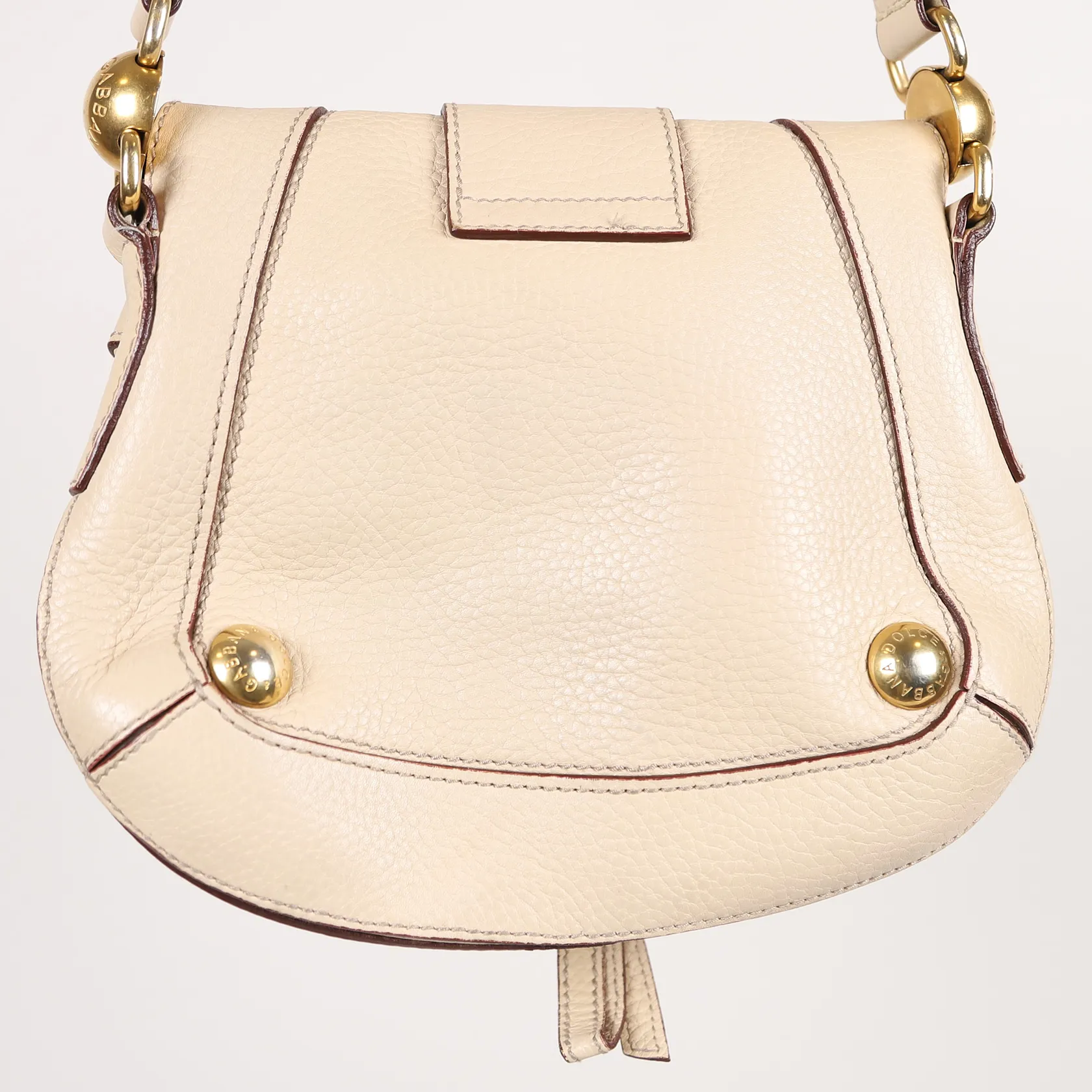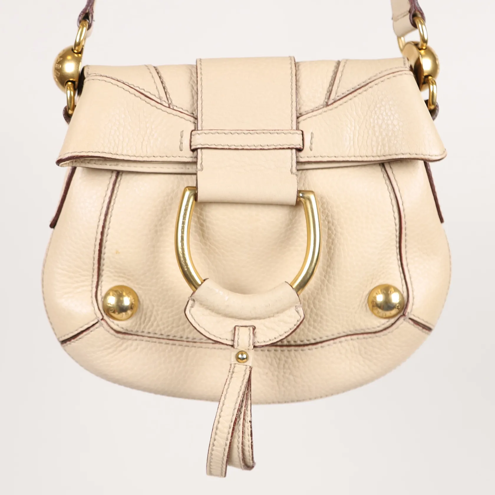 Väska, Dolce & Gabbana, beige skinn, beslag i gulmetall, invändigt fodrad i leopardimitation, samt en ficka med dragkedja, axelrem, mått ca: 26 x 21 x 4cm, bruksslitage, inga övriga tillbehör.