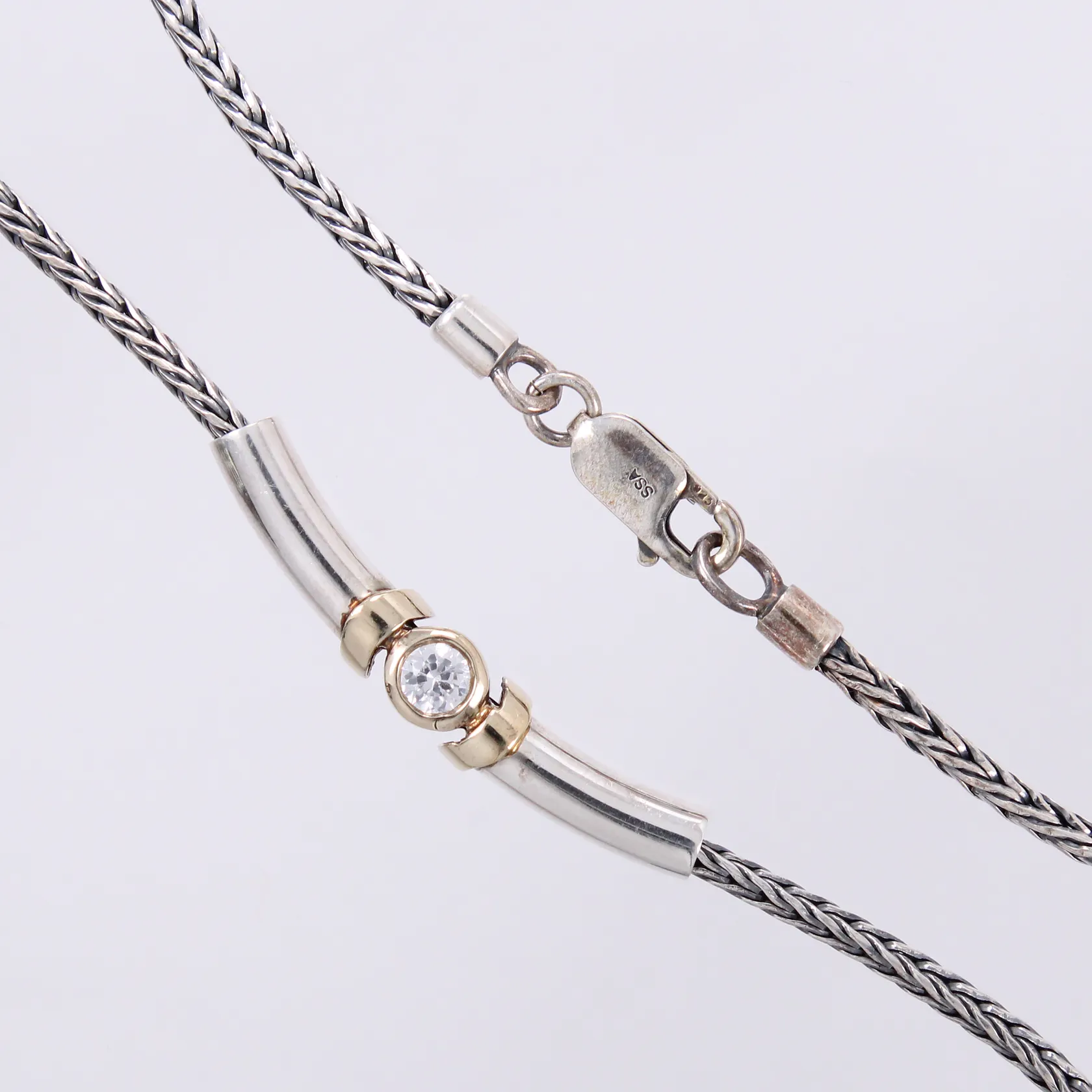 Collier med vit sten, längd: ca 42,5cm, bredd: ca 3-5mm, 925/1000, silver Vikt: 16,1 g.