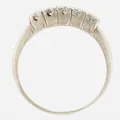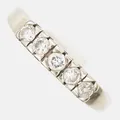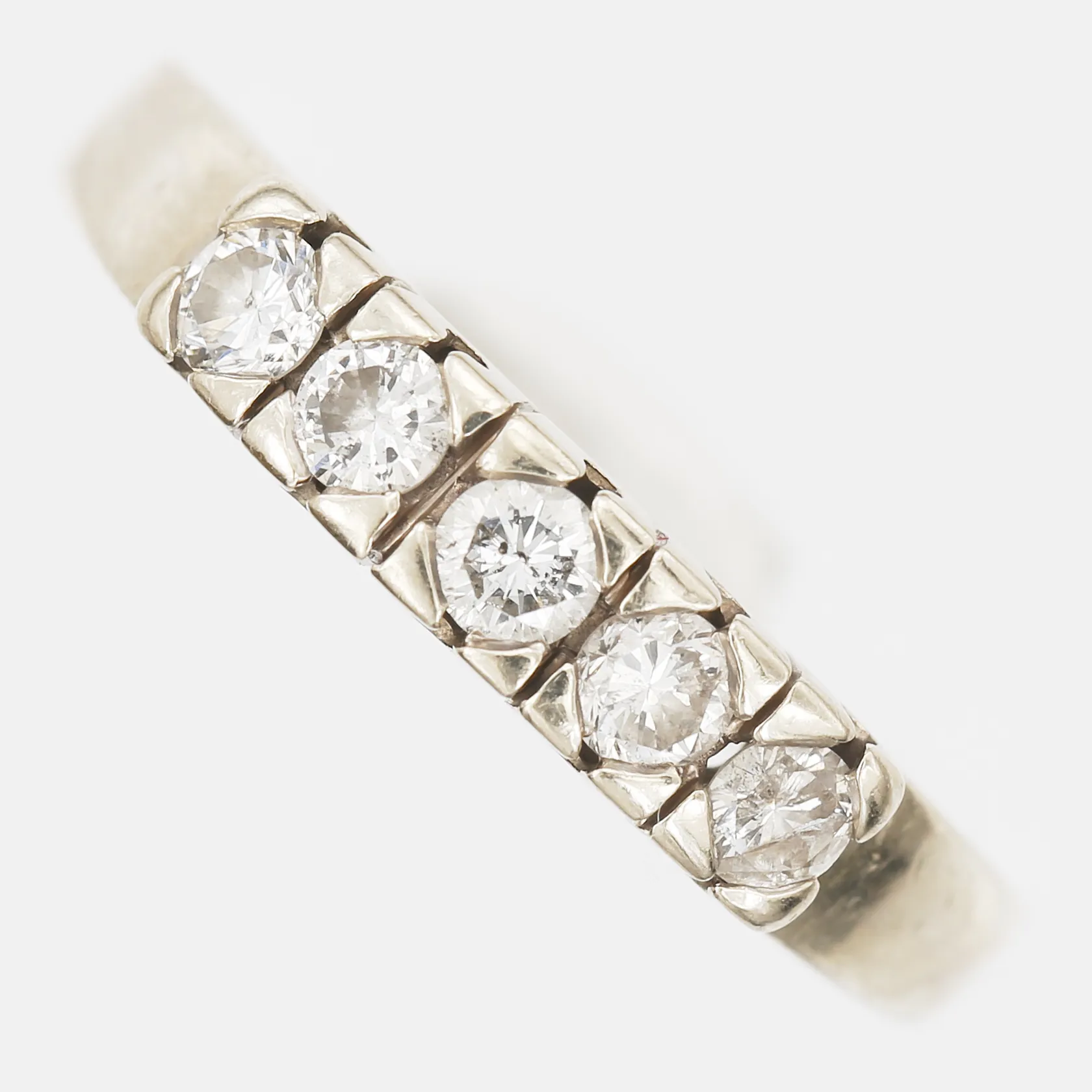 Ring med briljantslipade diamanter 5 x ca 0,10ct, stl: 18¾, bredd: 1,5-4mm, bör rodieras, 18K vitguld. Vikt: 4,7 g.