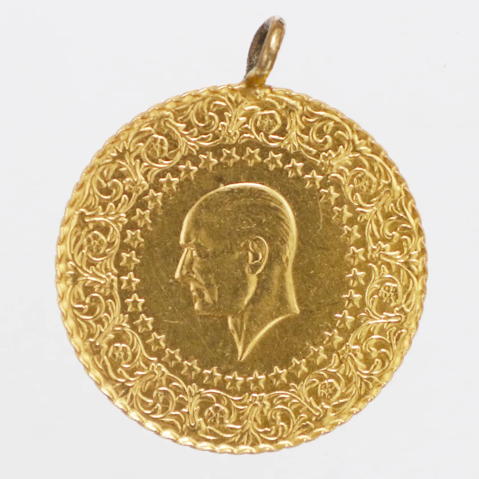 Mynt Attaturk år 2013 Ø22mm, ögla ej i guld, 21,6K Vikt: 3,5 g.