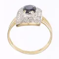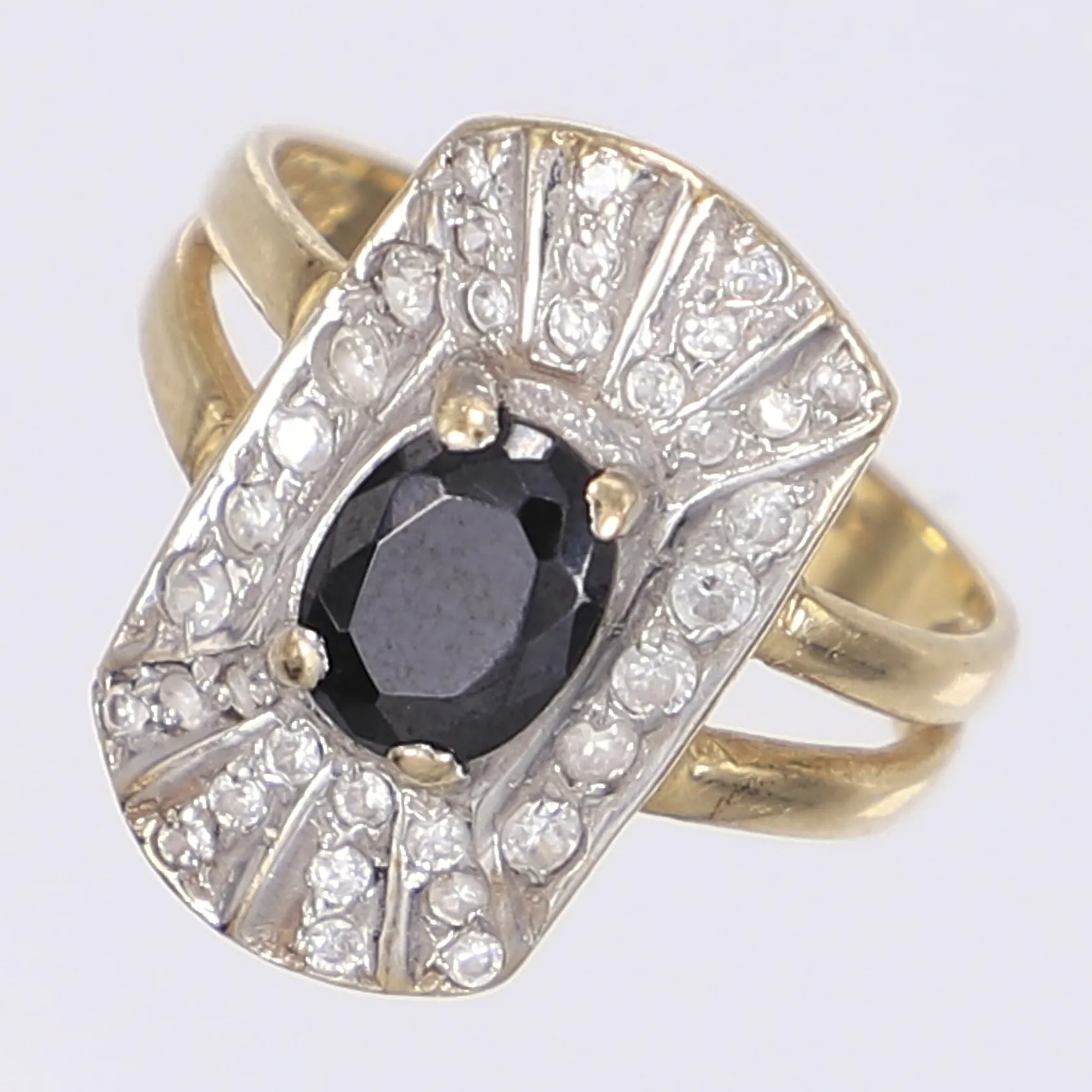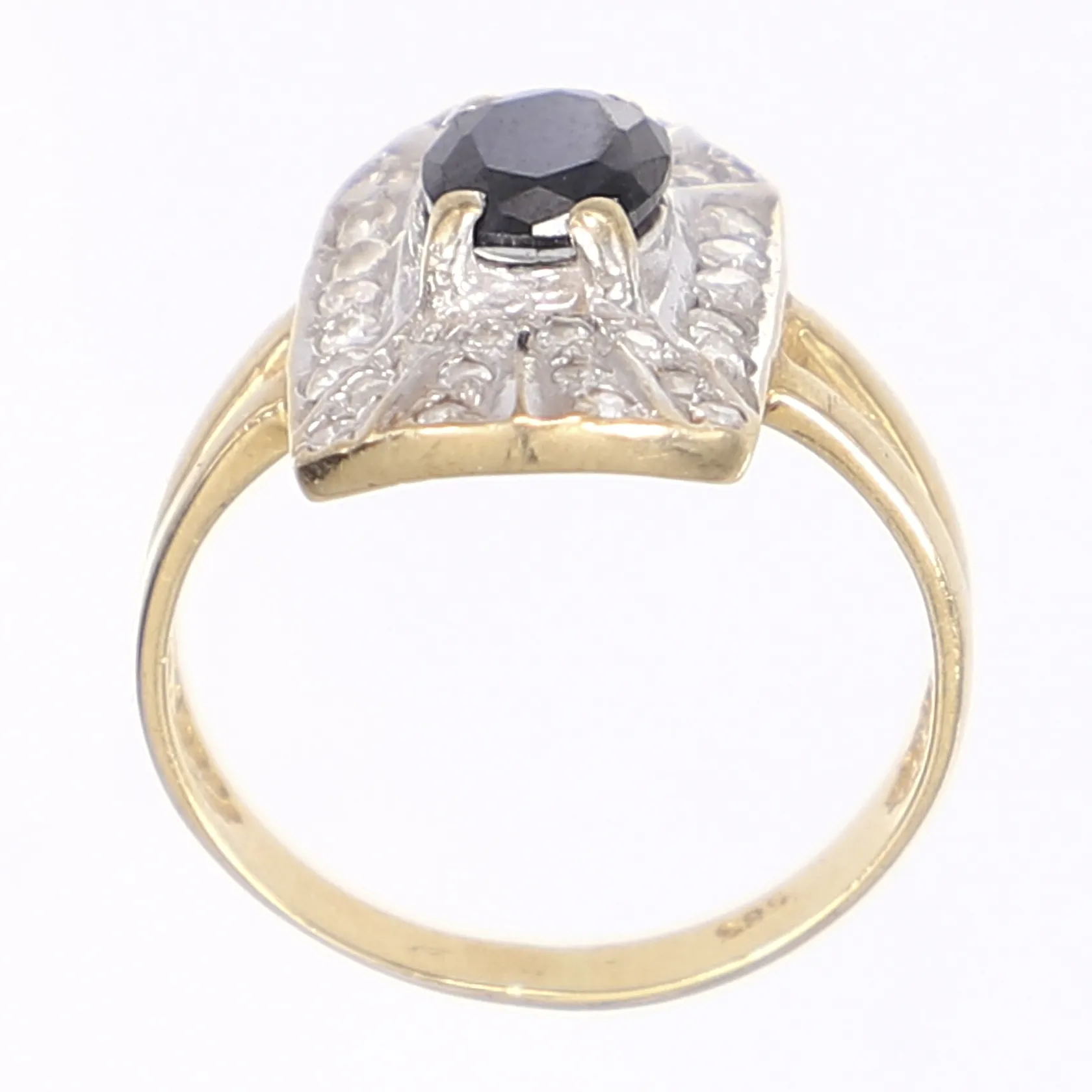 Ring med vita samt blå sten stl 18 bredd 3-19mm 14K Vikt: 4,9 g.
