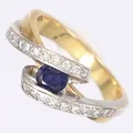 Ring med blå sten samt dia tot 0,20ctv