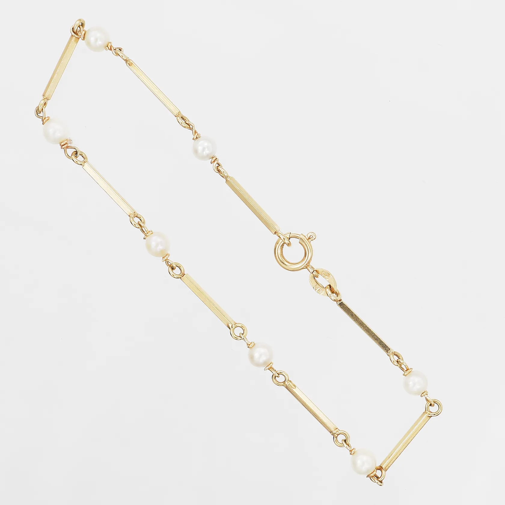 Armband med odlande saltvattenpärlor, Stavlänk, längd 21cm, bredd 2-4mm, 18K Guld. Vikt: 5,2 g.