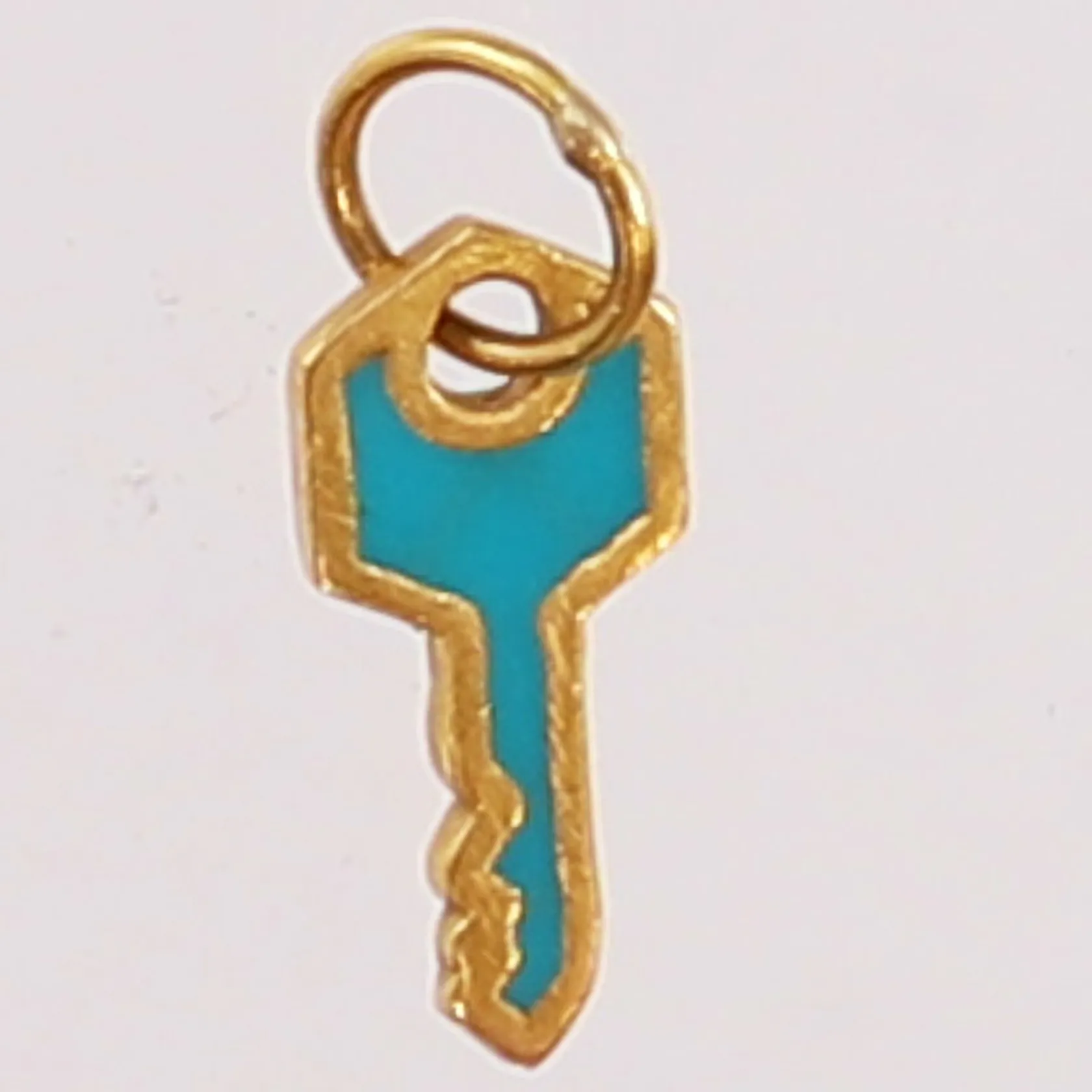 Hänge nyckel med emaljarbete, ca 17x6mm inkl ögla. 18K Vikt: 0,5 g.