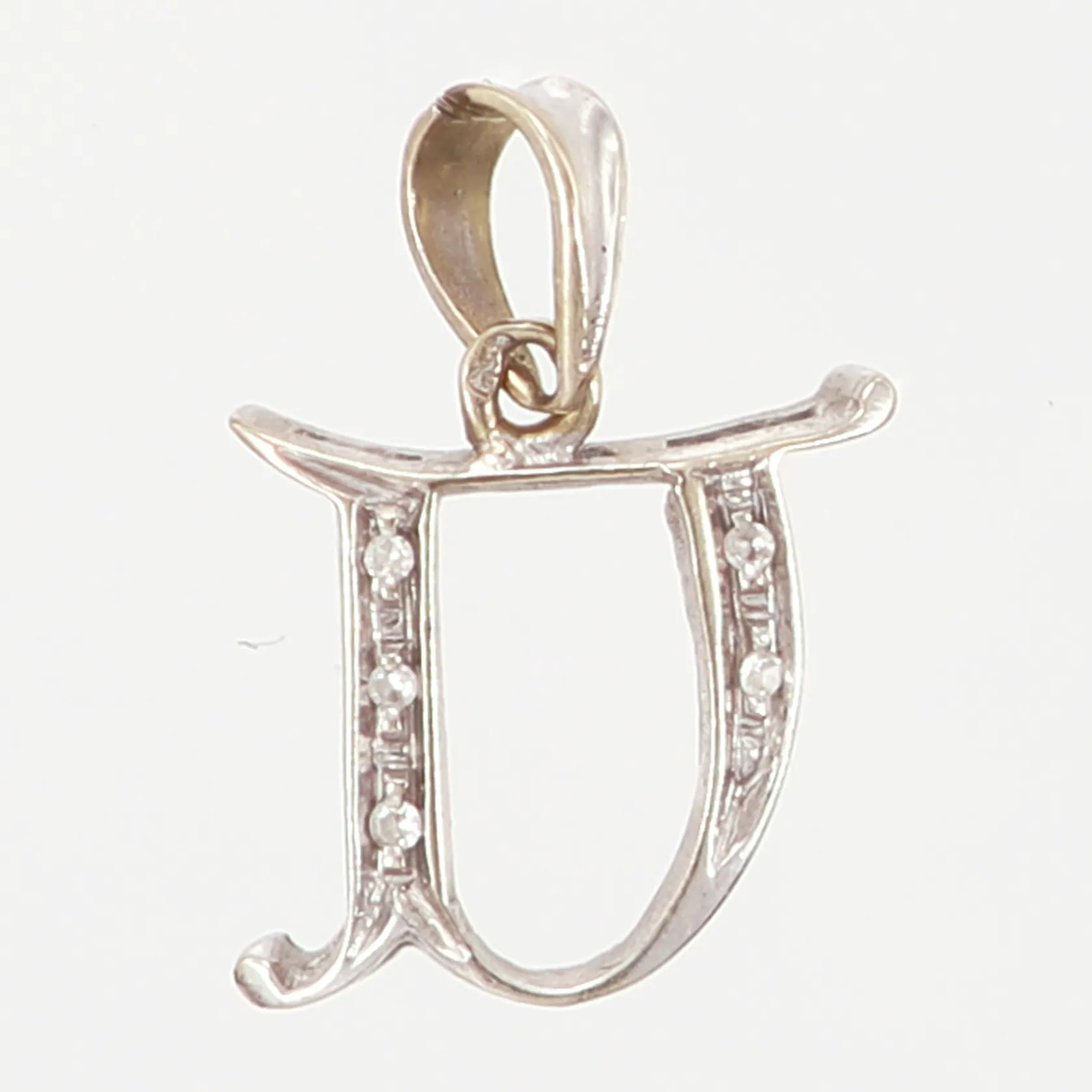 Hänge vitguld bokstav "U" med vita stenar, 20x8mm, 18K Vikt: 1 g.