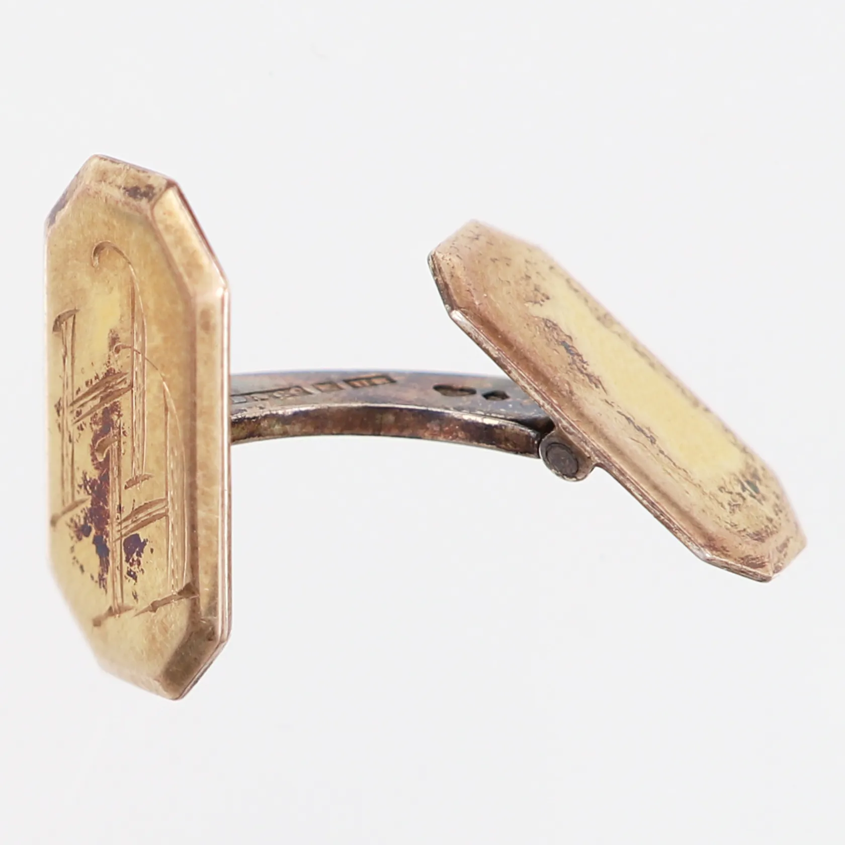 En udda manschettknapp, längd: 23mm, bredd: 17-19mm, gravyr, silver 830/1000 Vikt: 4,6 g.