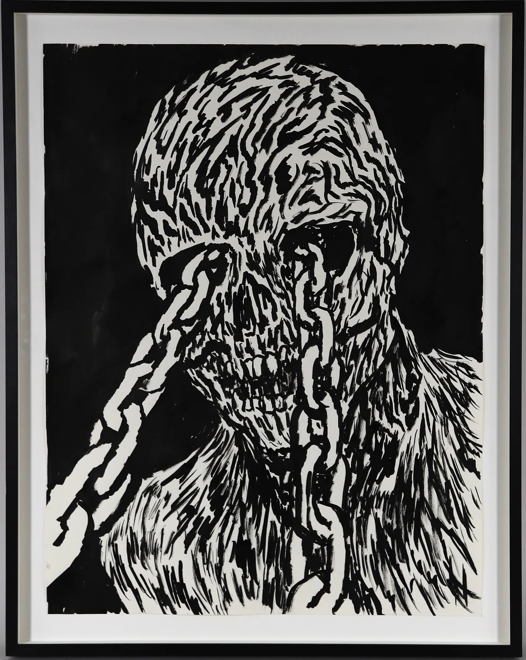 Tavla Mat Brinkman, tusch på papper, signerad och daterad -08 a tergo, kopia av signatur fäst på ram, bladstorlek 59x45cm, ej examinerad ur ram. Skickas med postpaket.