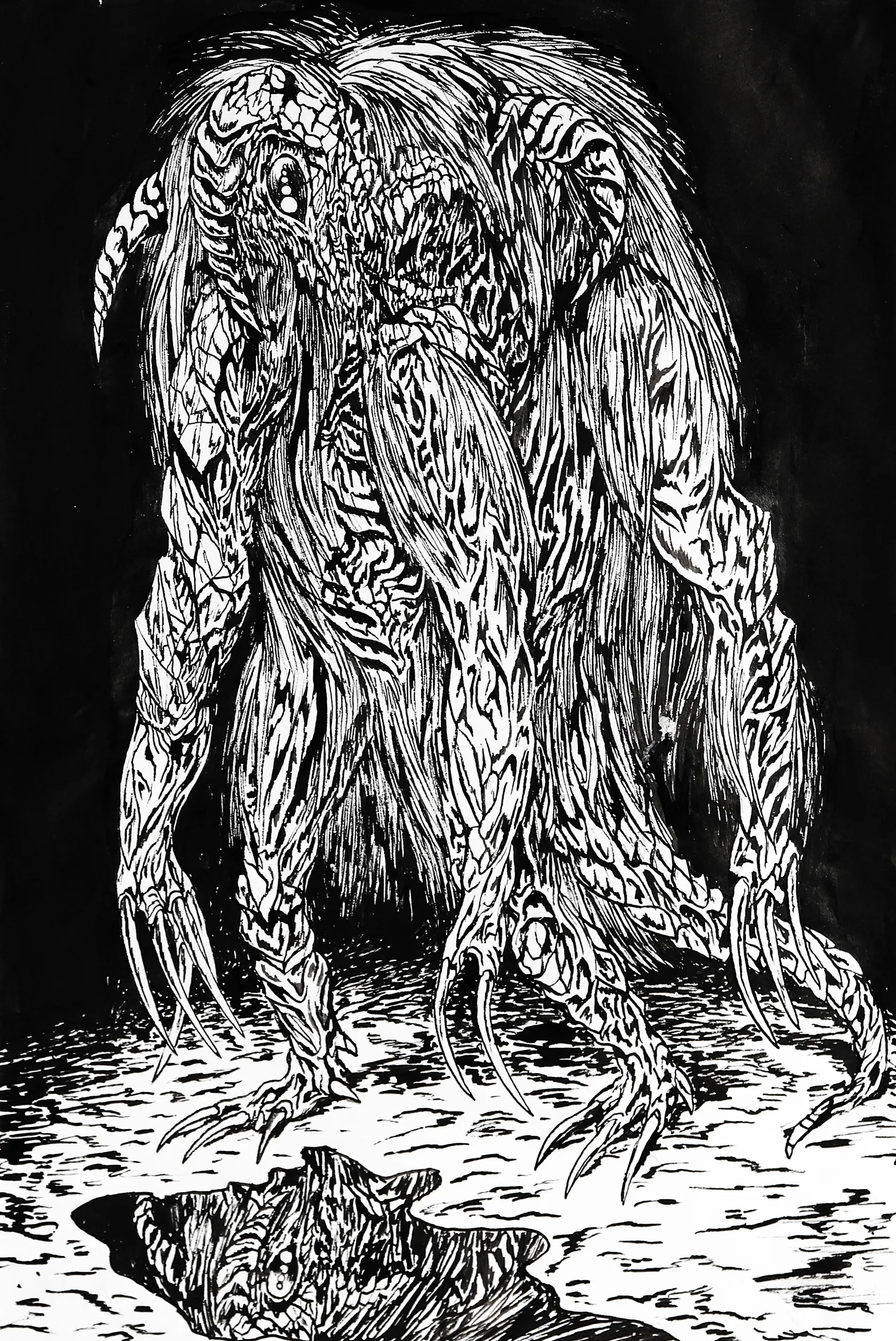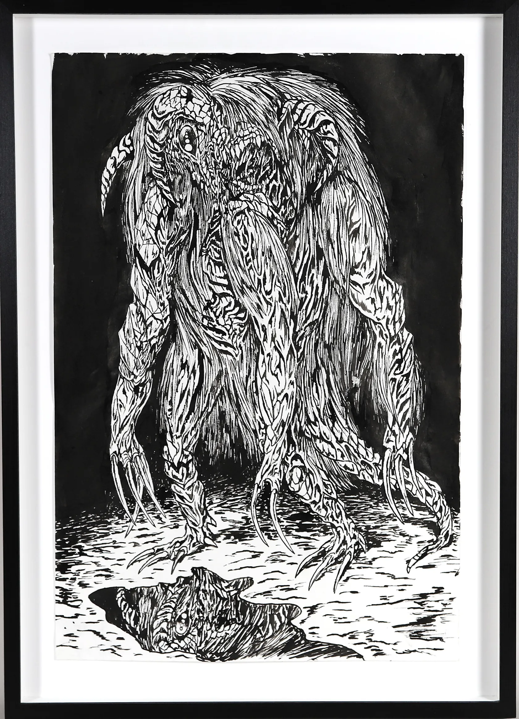 Tavla Mat Brinkman, tusch på papper, a tergo signerad, titulerad "AT A PUDDLE" samt daterad 07, kopia av signatur fäst på ram, bladstorlek 45x30cm, ej examinerad ur ram. Skickas med postpaket.
