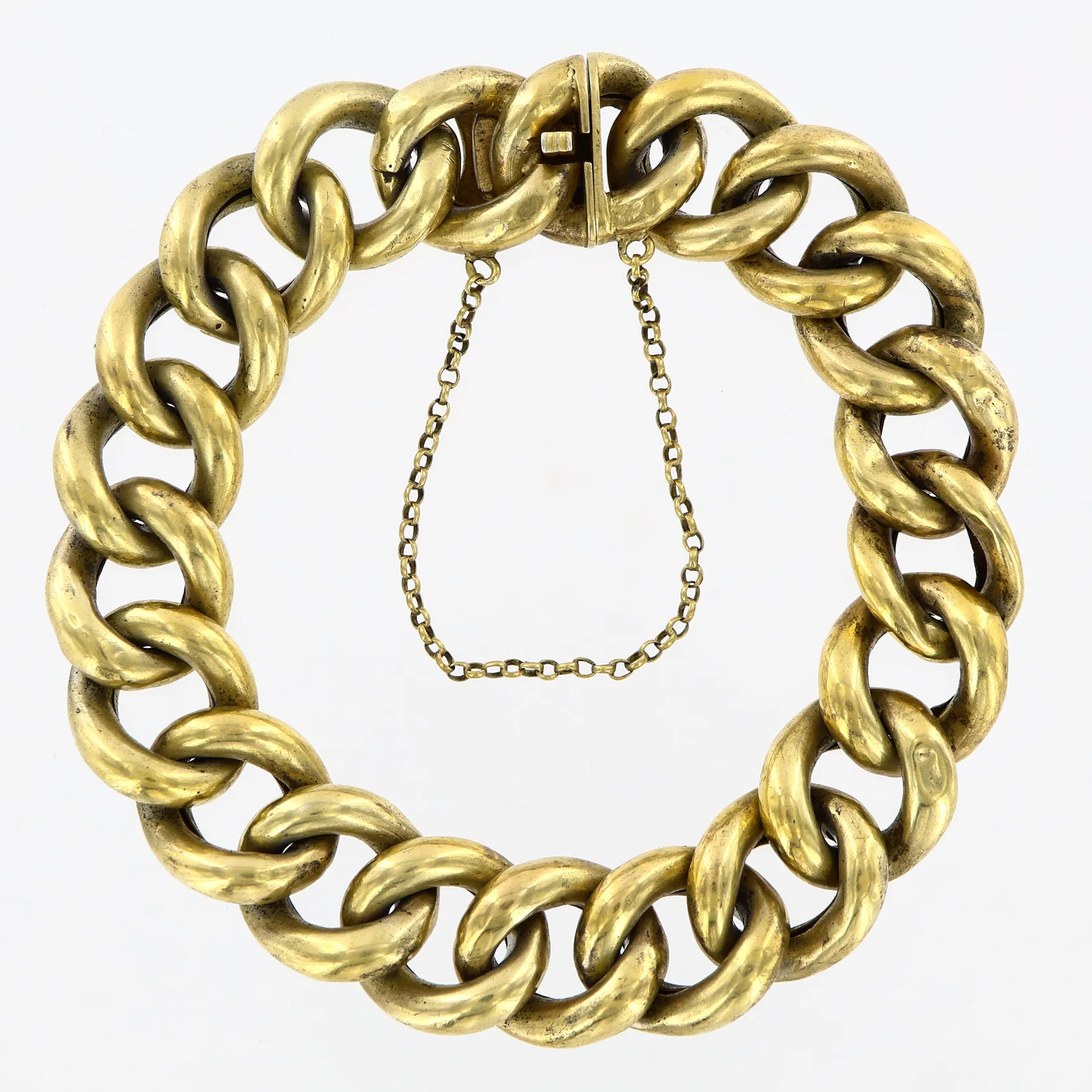 Armband ihåligt med förgyllning, 20,5cm, bredd 15mm, ostämplat, troligtvis silver, gravyr på lås Vikt: 30,9 g.