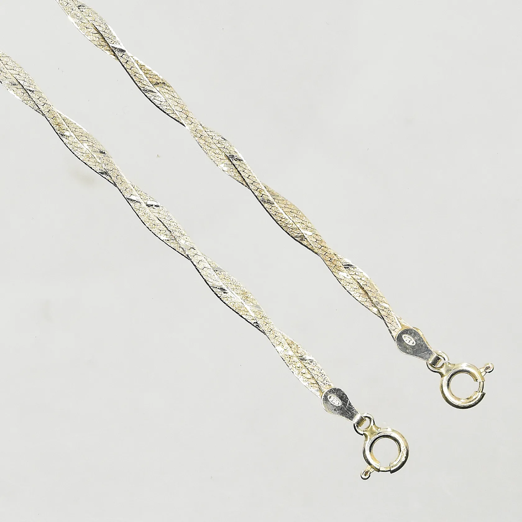 2 armband flätade modeller, längd:18 cm, bredd 3 mm, ett lås defekt, 925/1000 silver. Vikt: 4,4 g.