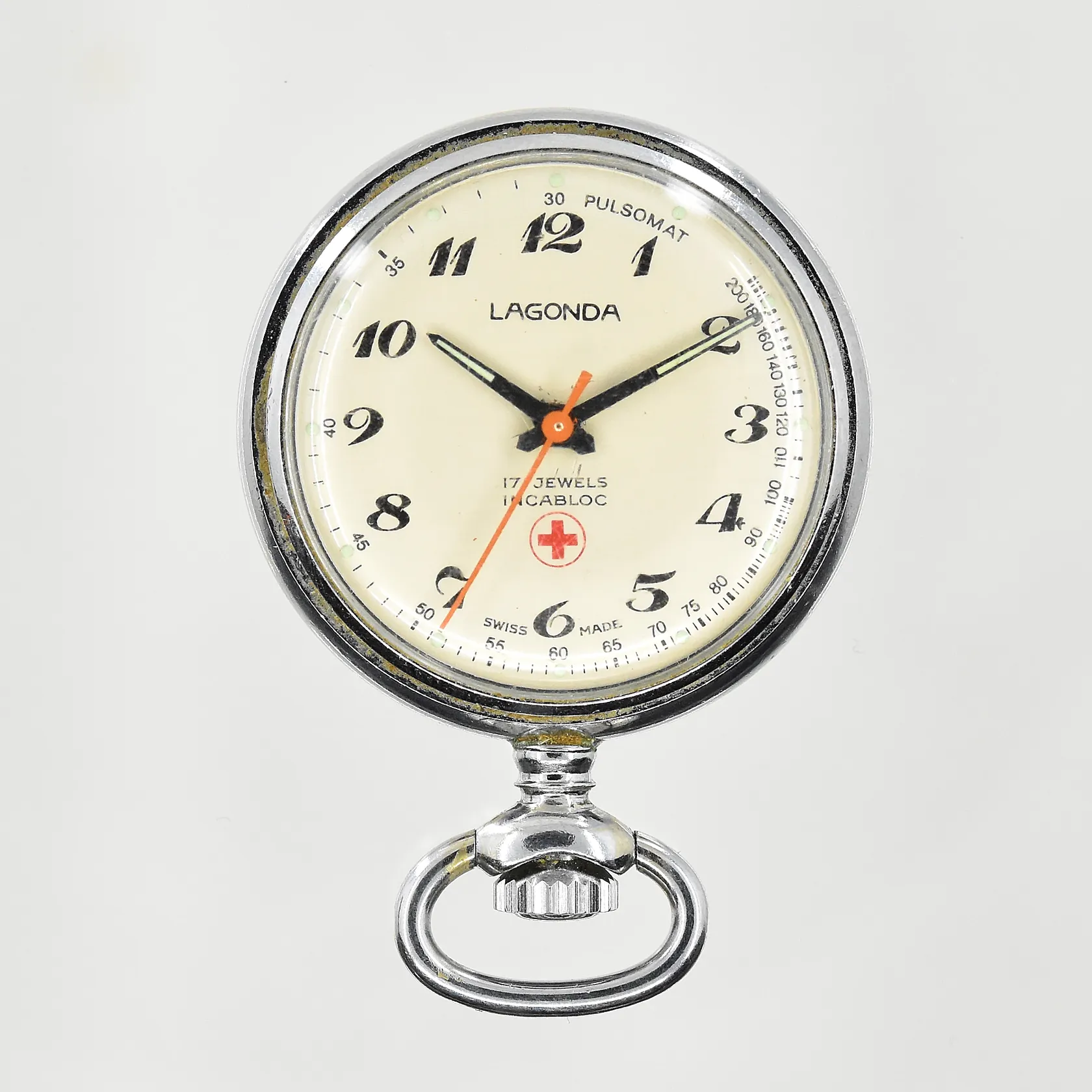 Sjuksköterskeur Lagonda, boett Ø30 mm, manuell, stål, pulsomat, fungerade vid testtillfället, swiss made, inga tillbehör.