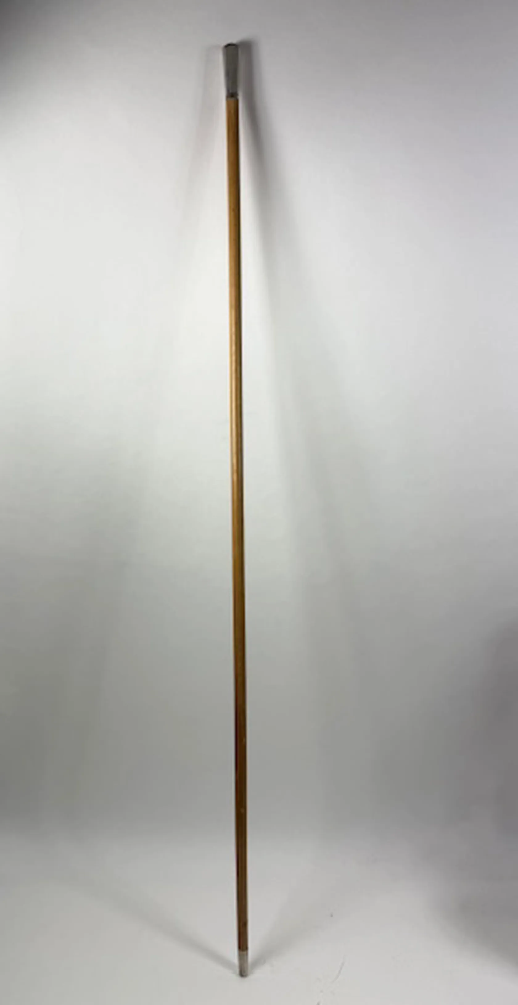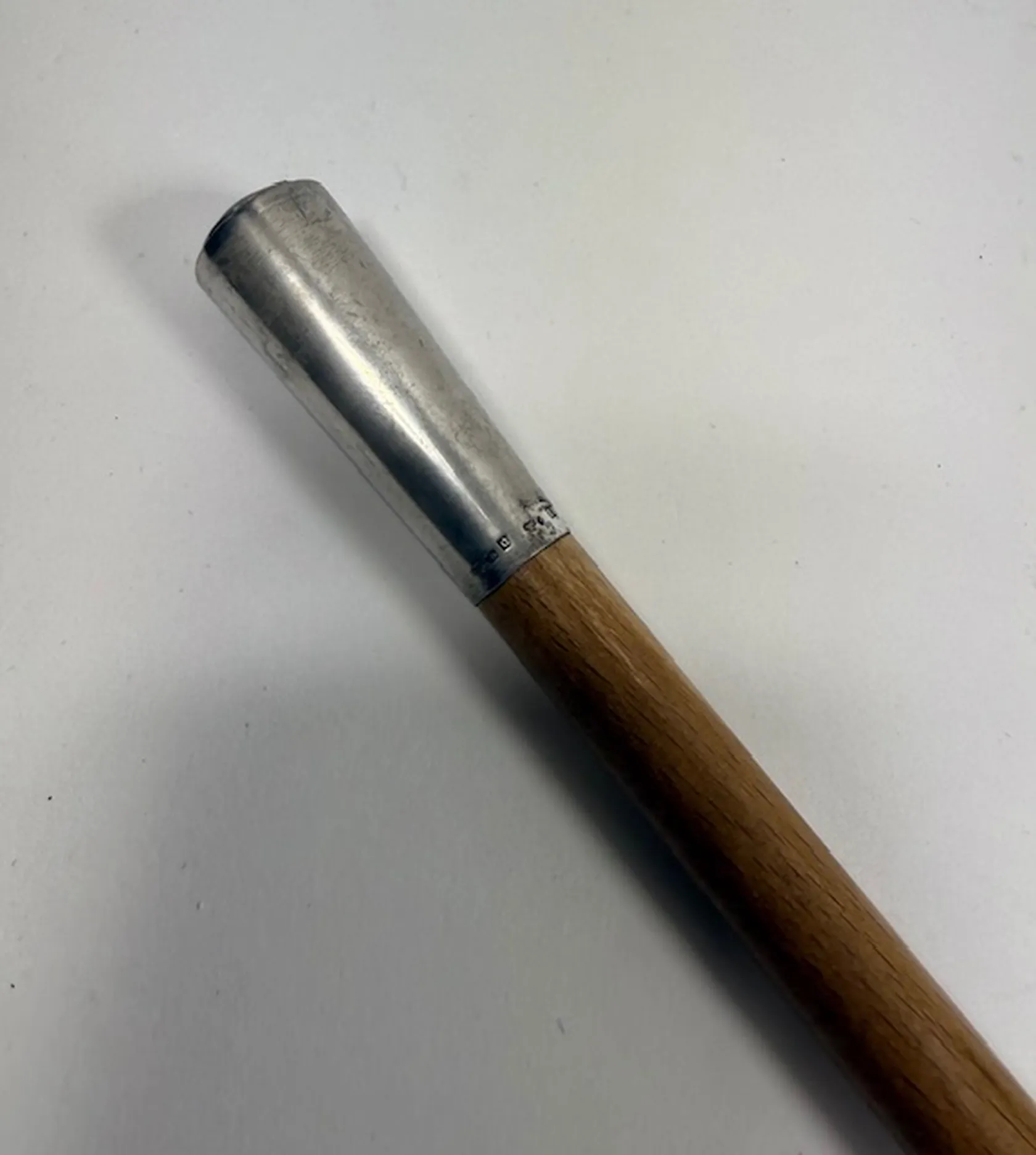 Studentkäpp i trä med knopp i silver, ände i metall, längd 90 cm, bredd 10-18 mm, tillverkad L9/1961, MGAB, bruttovikt 91,3g.