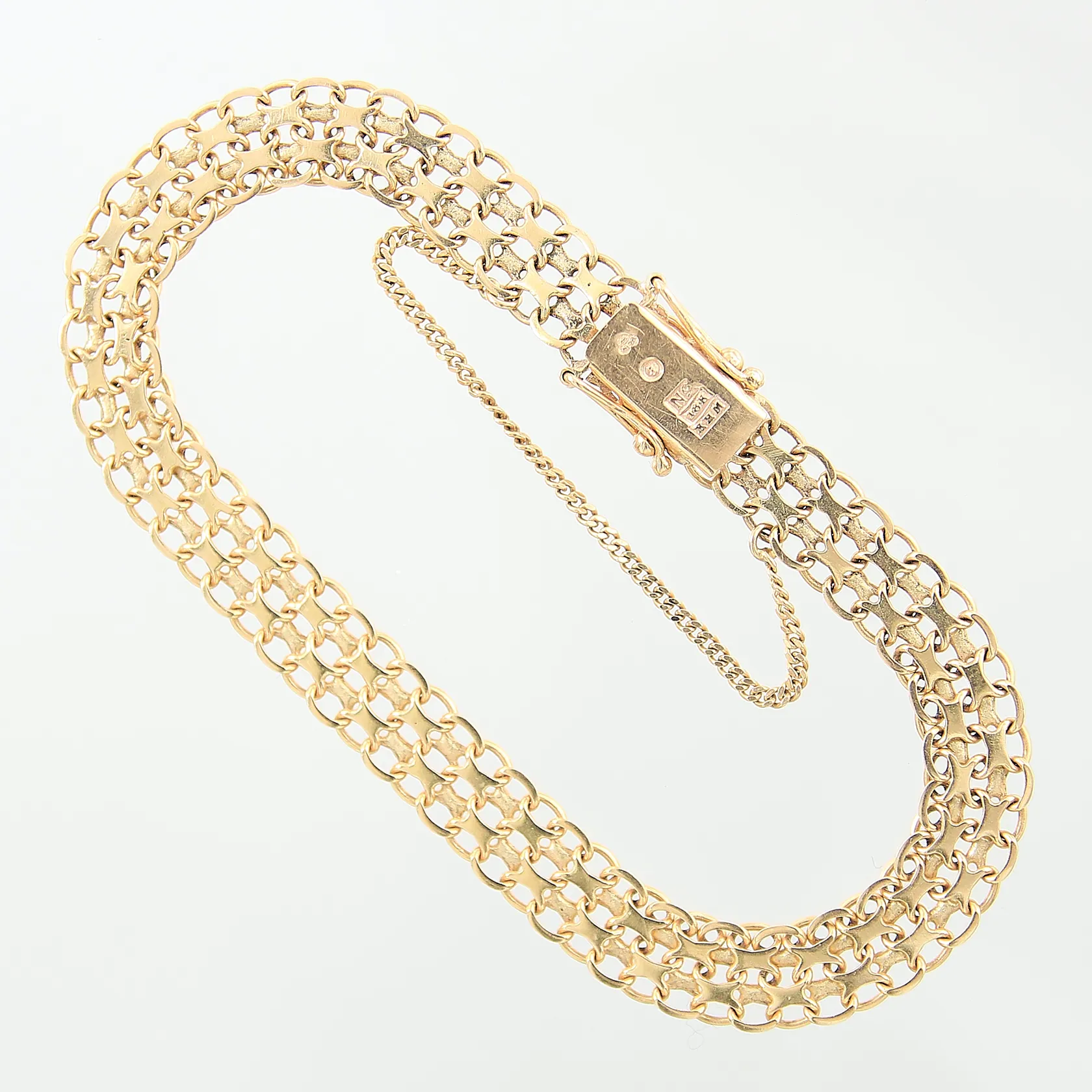 Armband X-länk, längd 19cm, bredd 7,3mm, säkerhetskedja, 18K Vikt: 10,3 g.