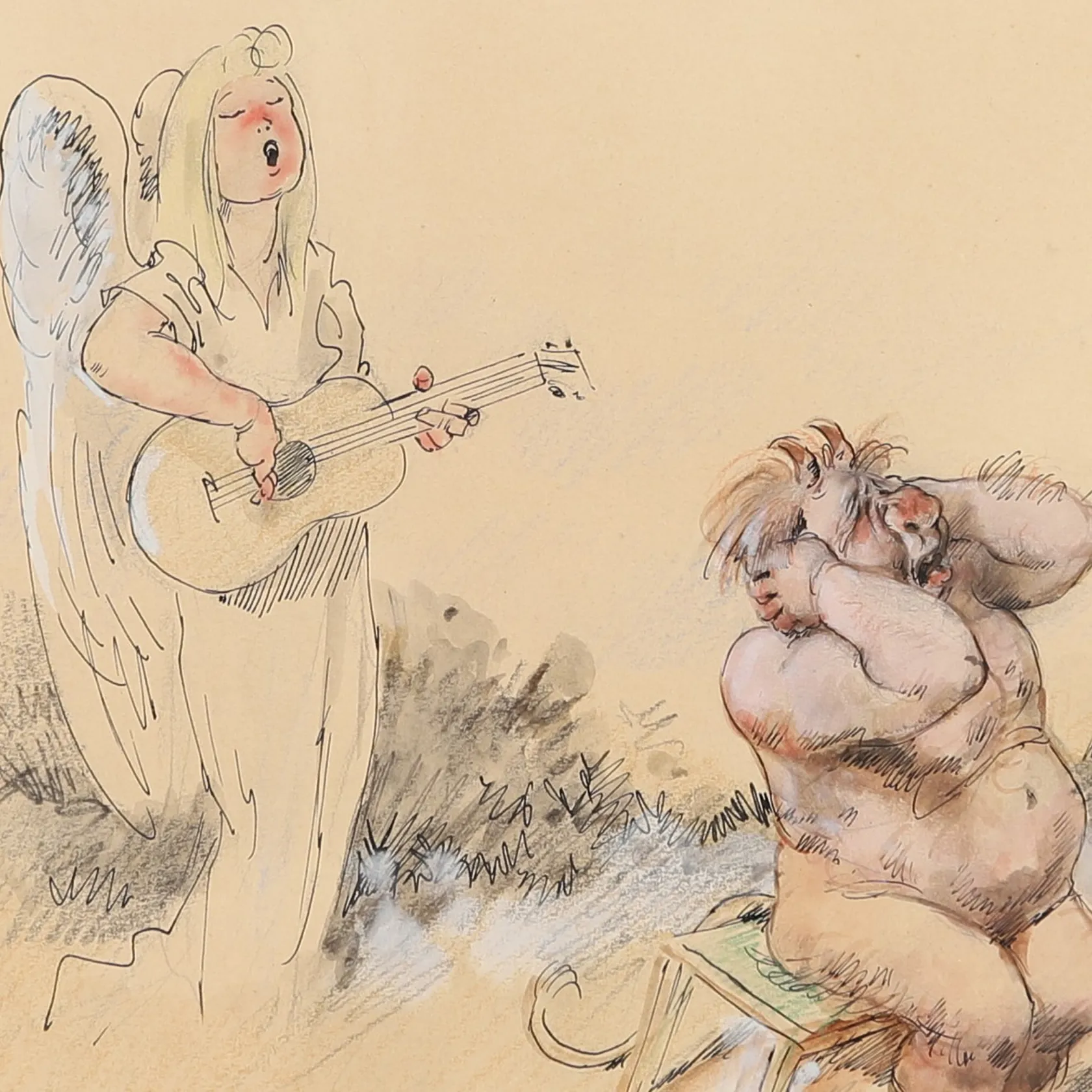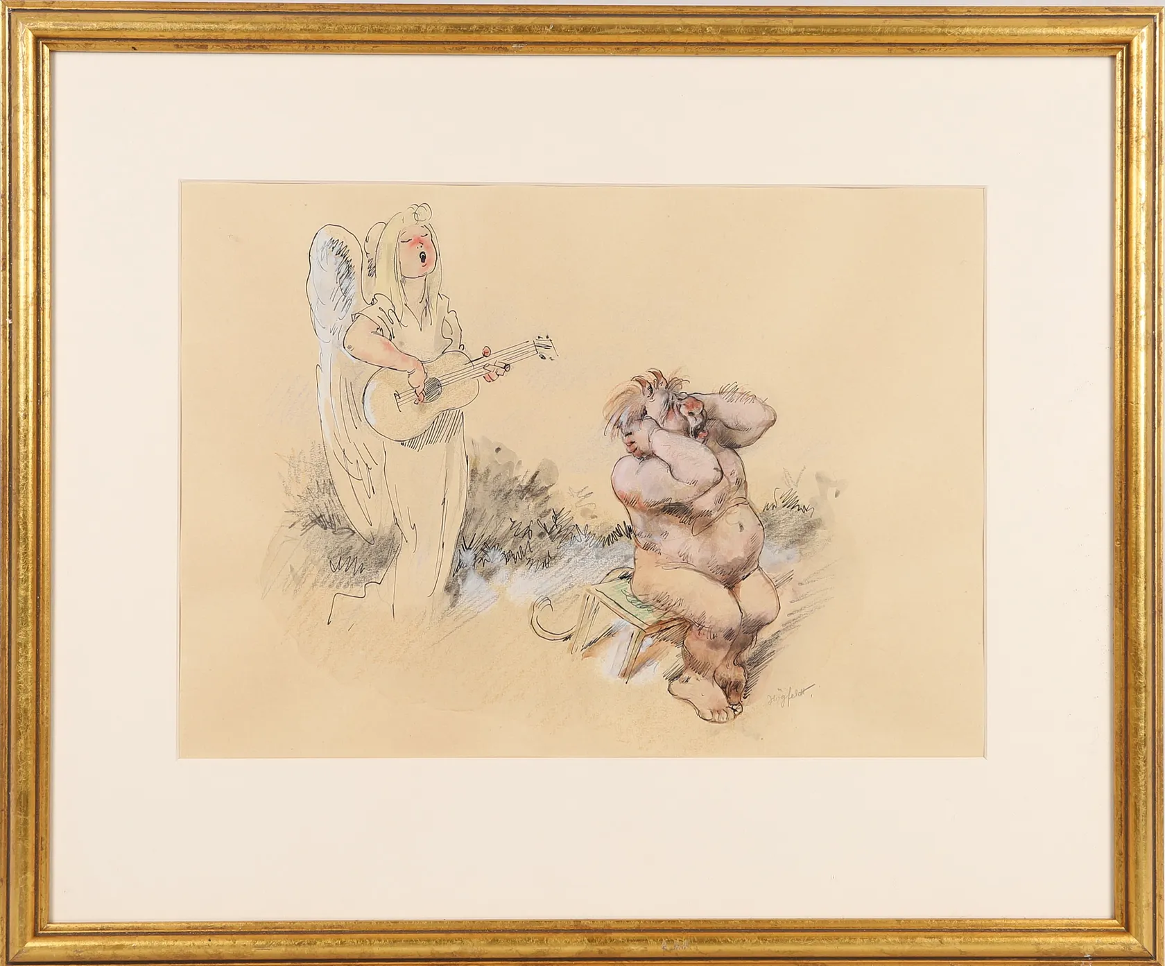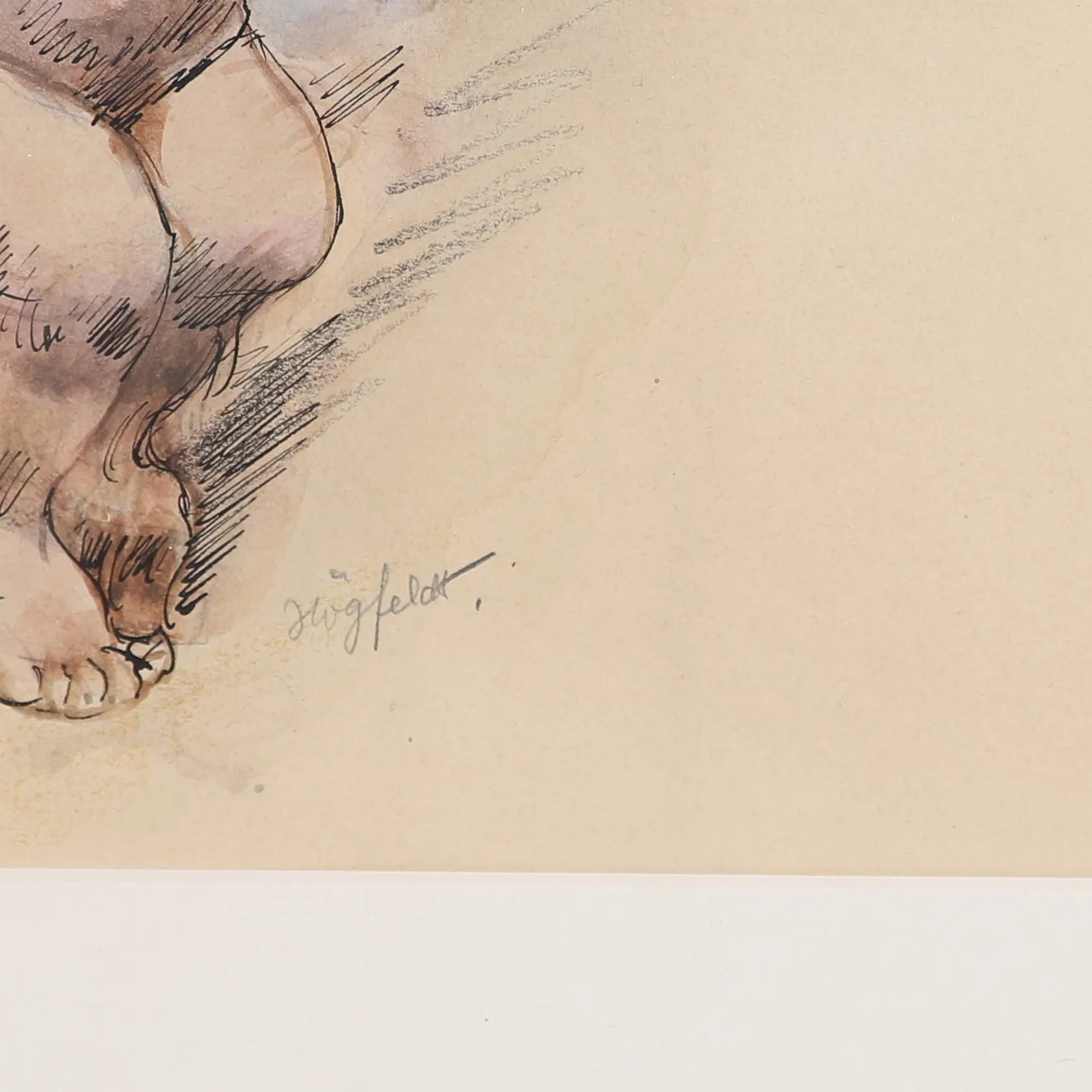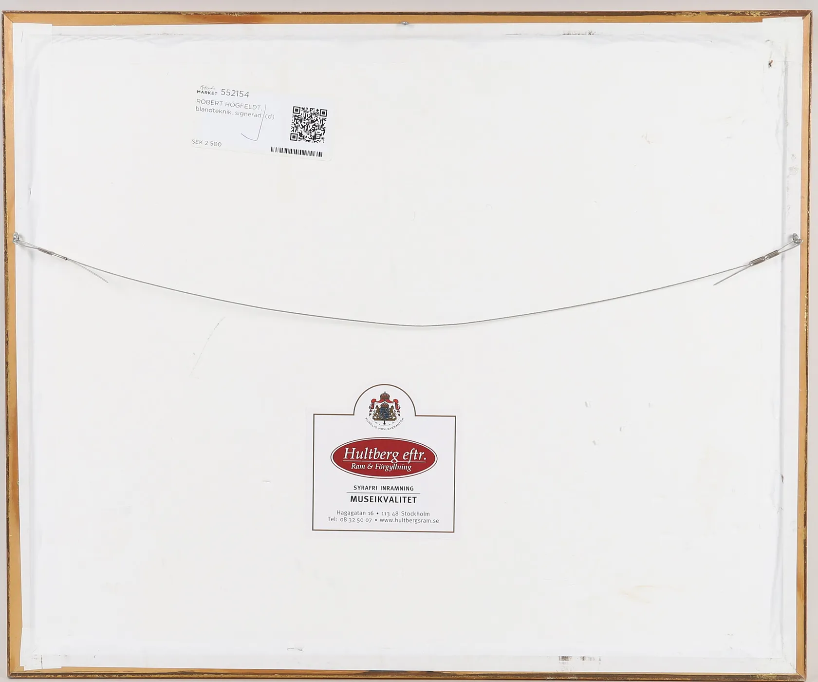 Tavla, blandteknik, Robert Högfeldt (1894-1986), signerad, bildstorlek 25 x 35 cm, rammåt ca 42 x 51 cm, slitage på ram, ej examinerad ur ram. Skickas med postpaket.
