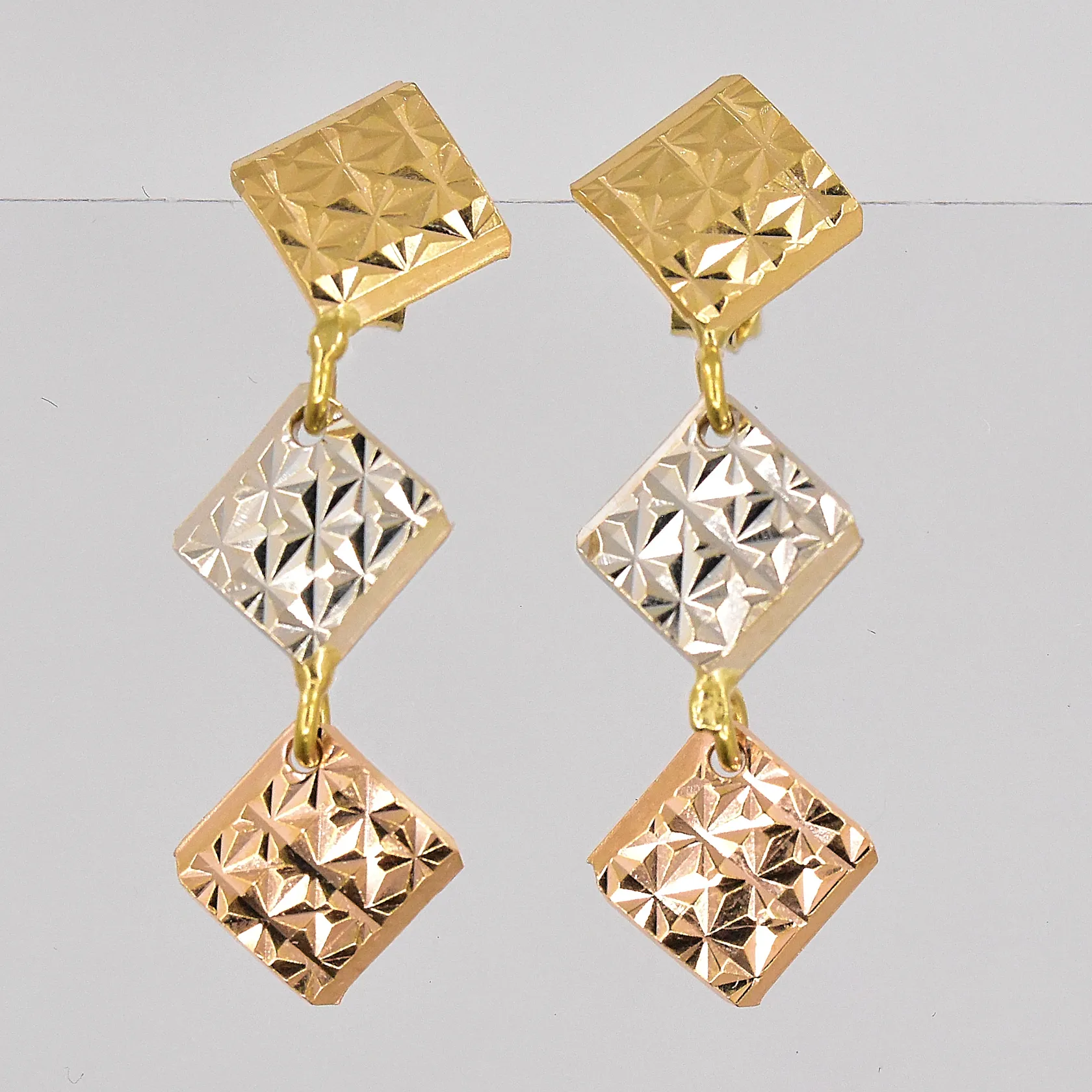 Ett par örhängen, 27x8,5mm, 3-färgade, 18K Vikt: 3,2 g.