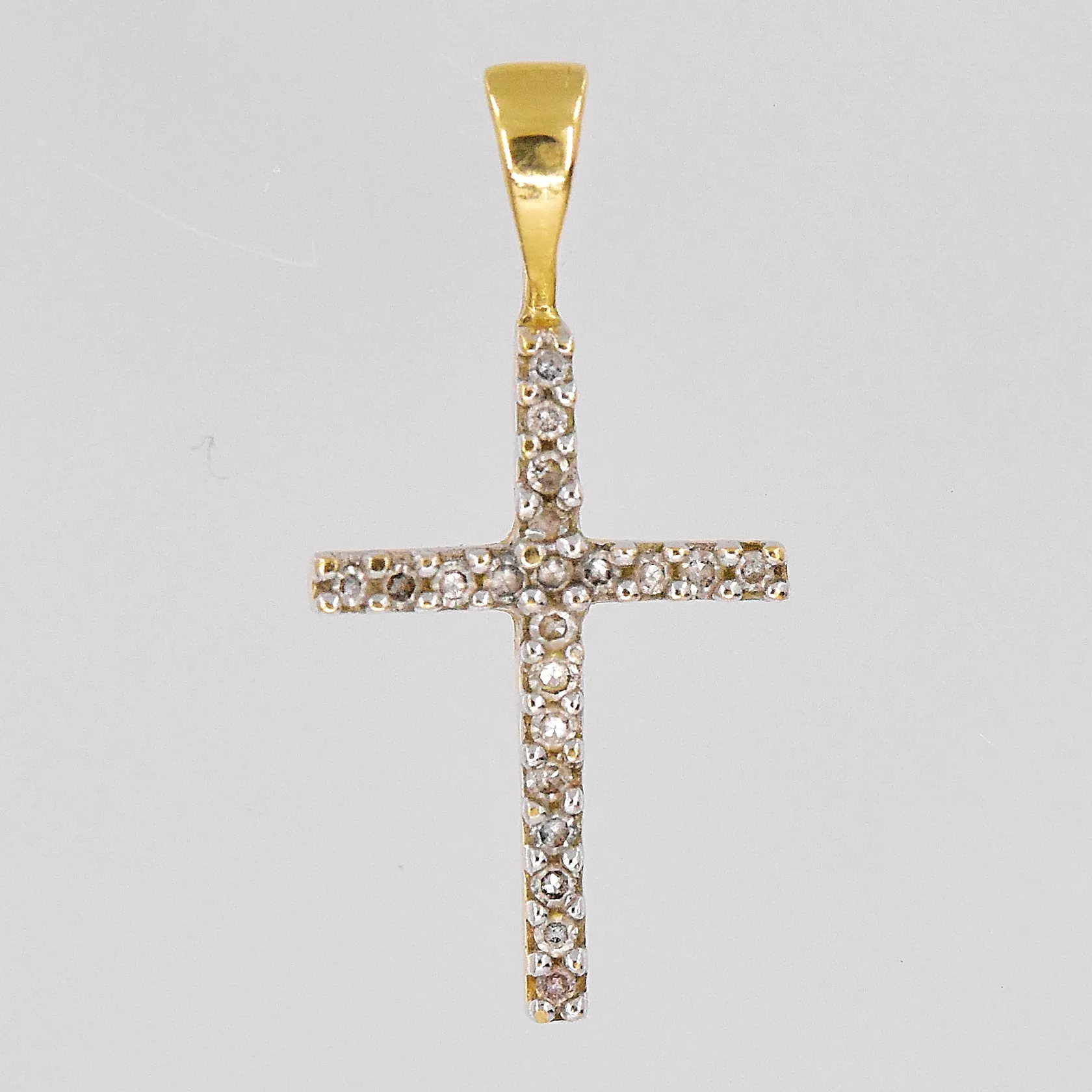 Hänge kors med vita stenar, 9x18mm inklusive ögla, 18K Vikt: 0,7 g.
