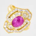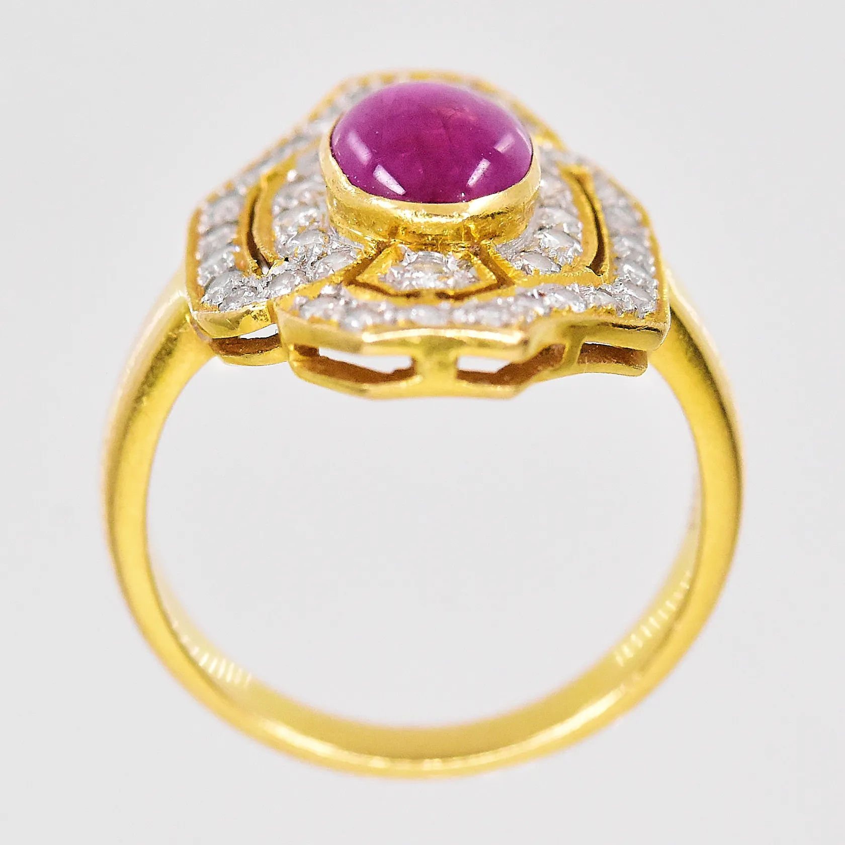 Ring med diamanter, ca 0,40ctv, cabochonslipad rubin, stl 16¼, 18K Vikt: 5,2 g.