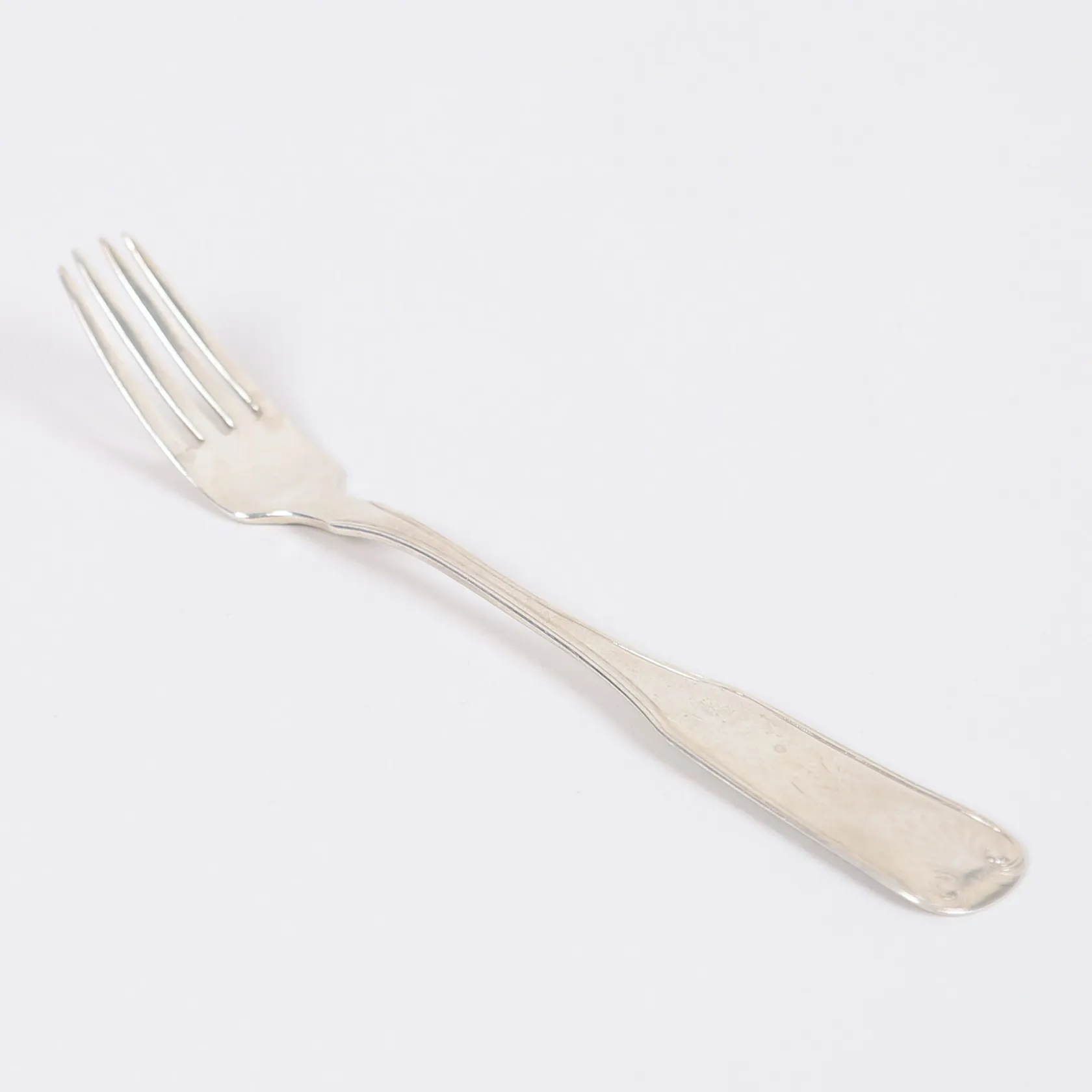 Bordsgaffel, modell snäcka, längd 18,5cm, utländska stämplar, Silver. Vikt: 40,9 g.