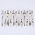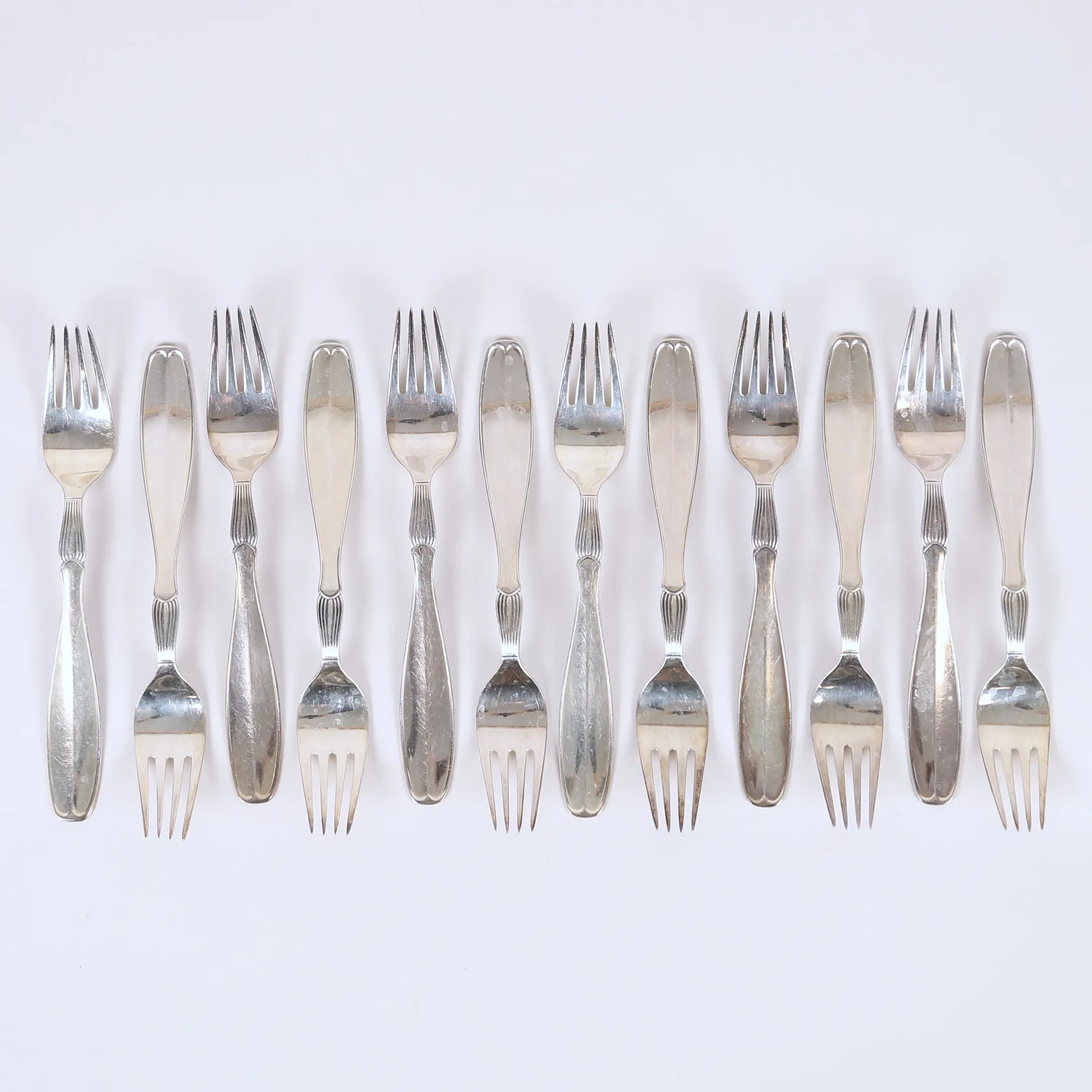 Tolv bordsgafflar, modell Vängova, GAB, 1965, längd 18,5cm, repiga, Silver. Vikt: 482 g.