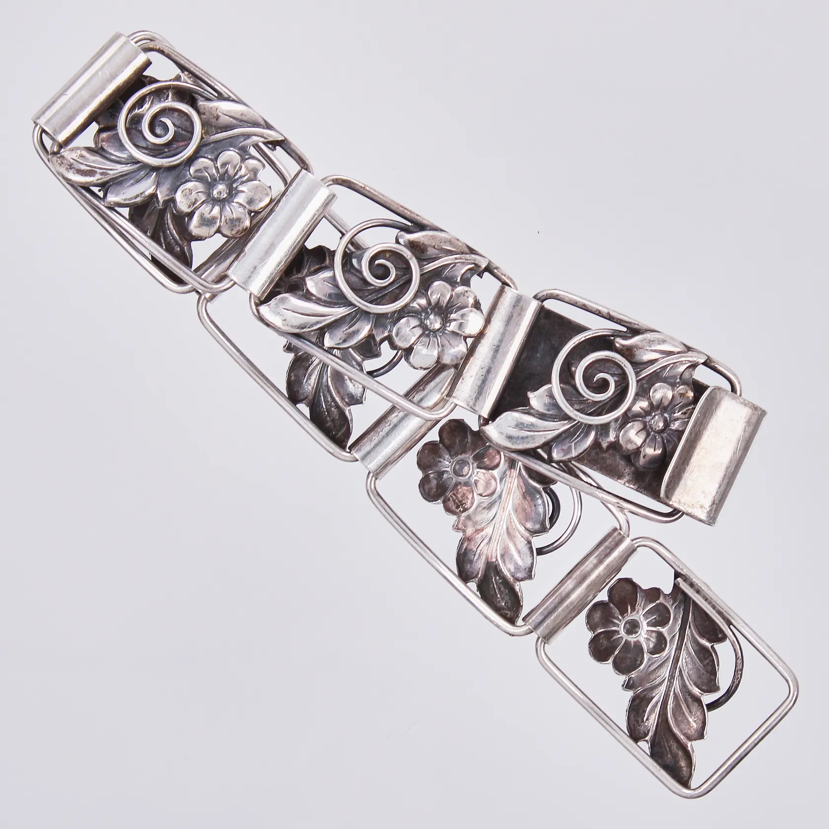 Armband otydliga stämplar år 1948, längd ca 19,5cm, bredd ca 20mm, silver Vikt: 29,7 g.