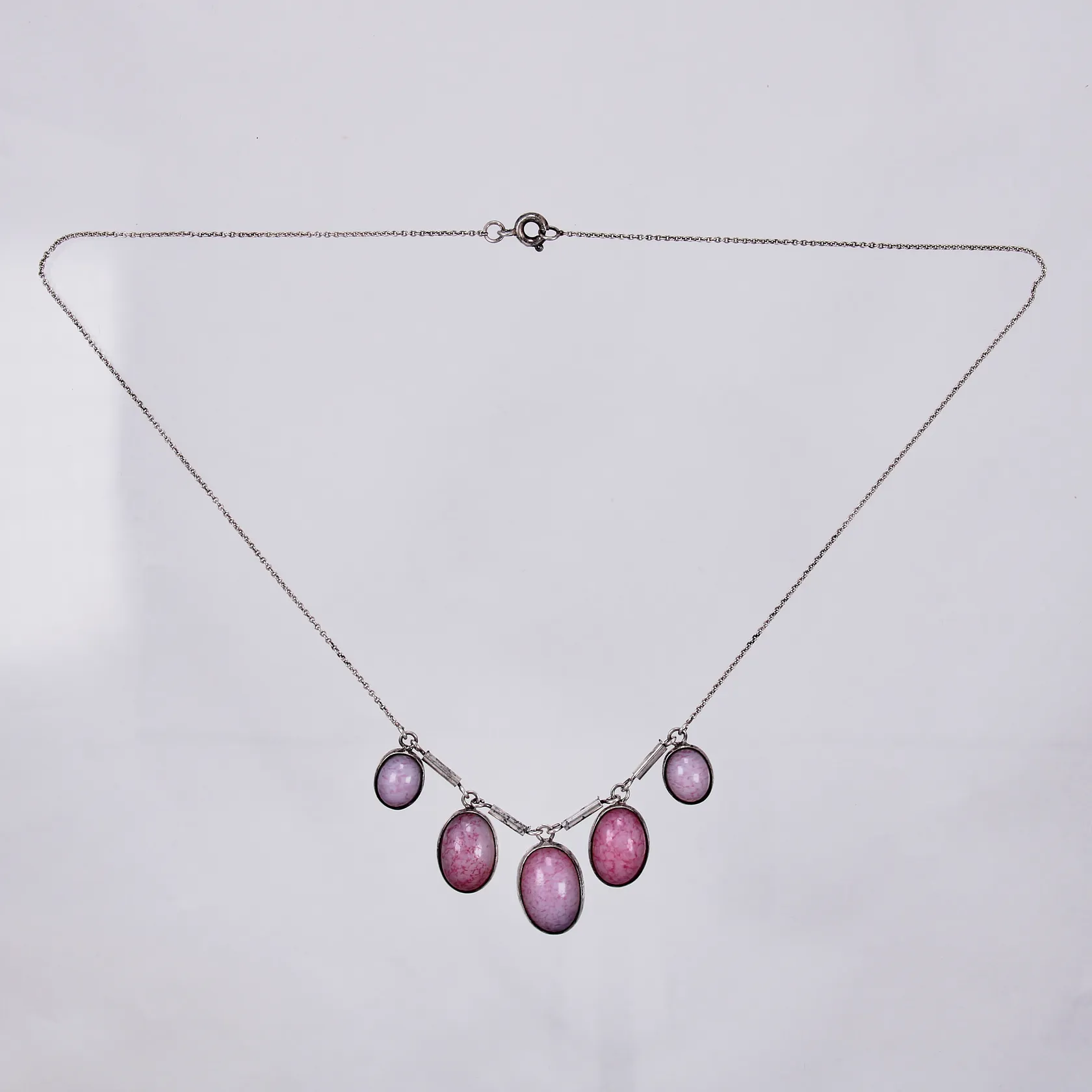 Collier med rosa stenar, otydliga stämplar, Finland 1959, längd ca 44,5cm, bredd ca 1-18mm, 813/1000 silver Vikt: 10 g.