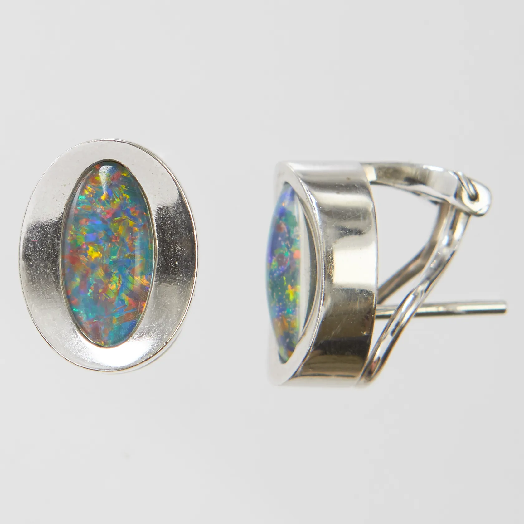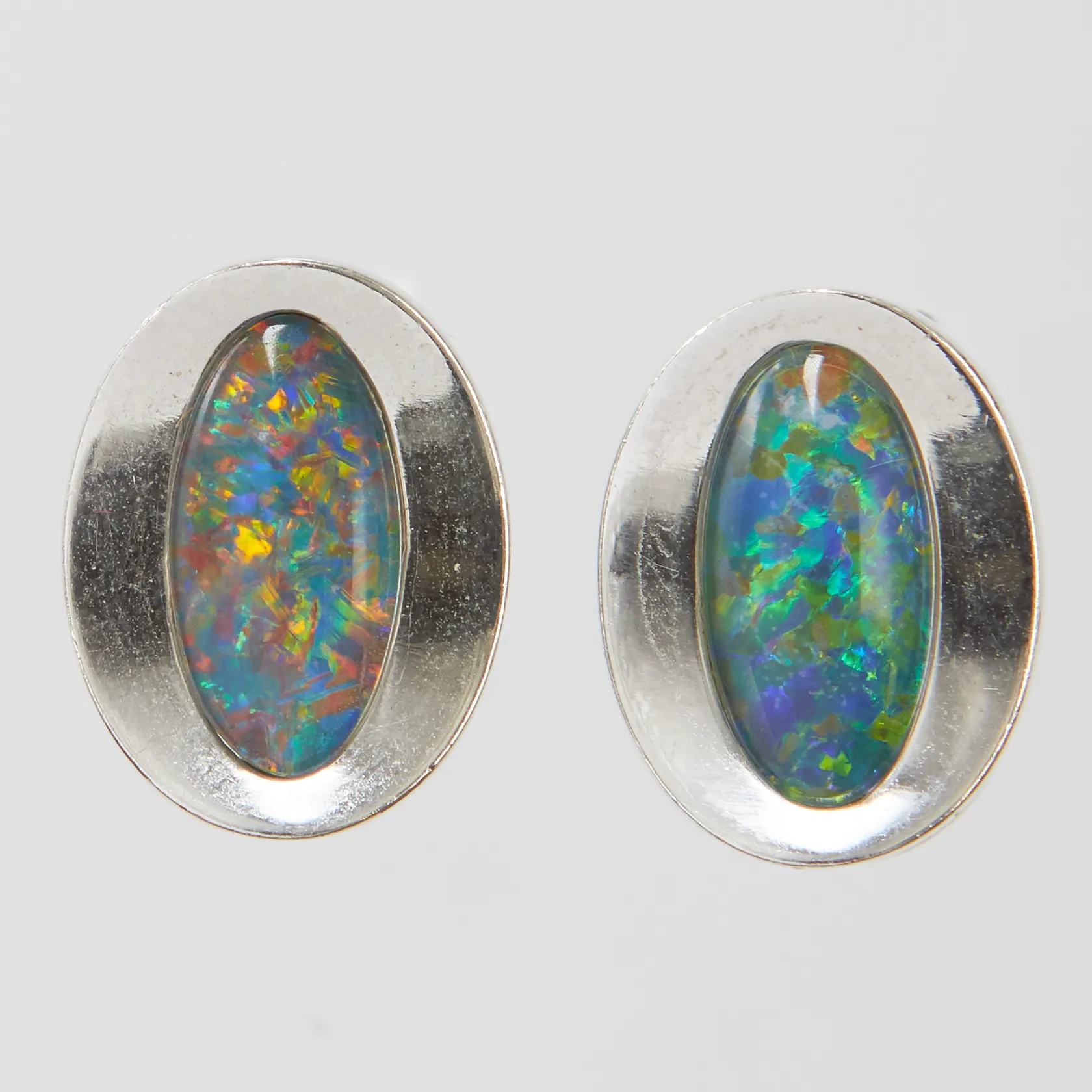Ett par örhängen med opaltripletter, ca 15x12mm, vitguld, 14K. finns för visning på kontoret Östermalm Vikt: 7 g.
