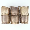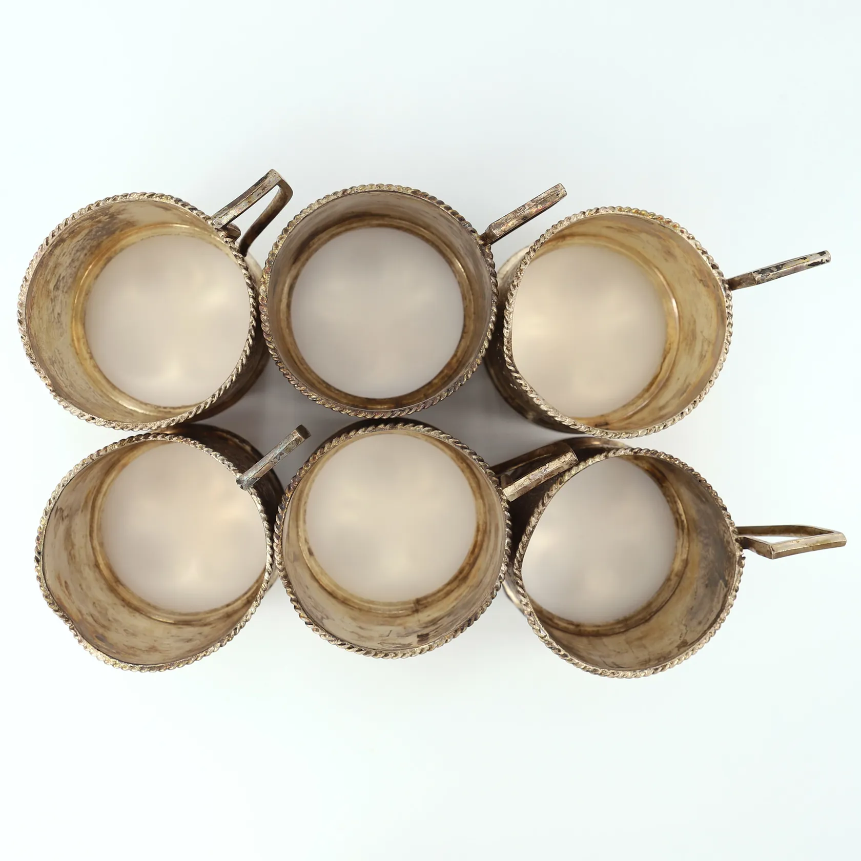 6 Koppar/mugghållare, höjd ca 4,7mm, Ø5mm, små buckliga, persiskt silver Vikt: 326,2 g.