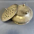 Skål å fot med lock, höjd ca 11-12cm, Ø17mm, persiskt silver Vikt: 582 g.
