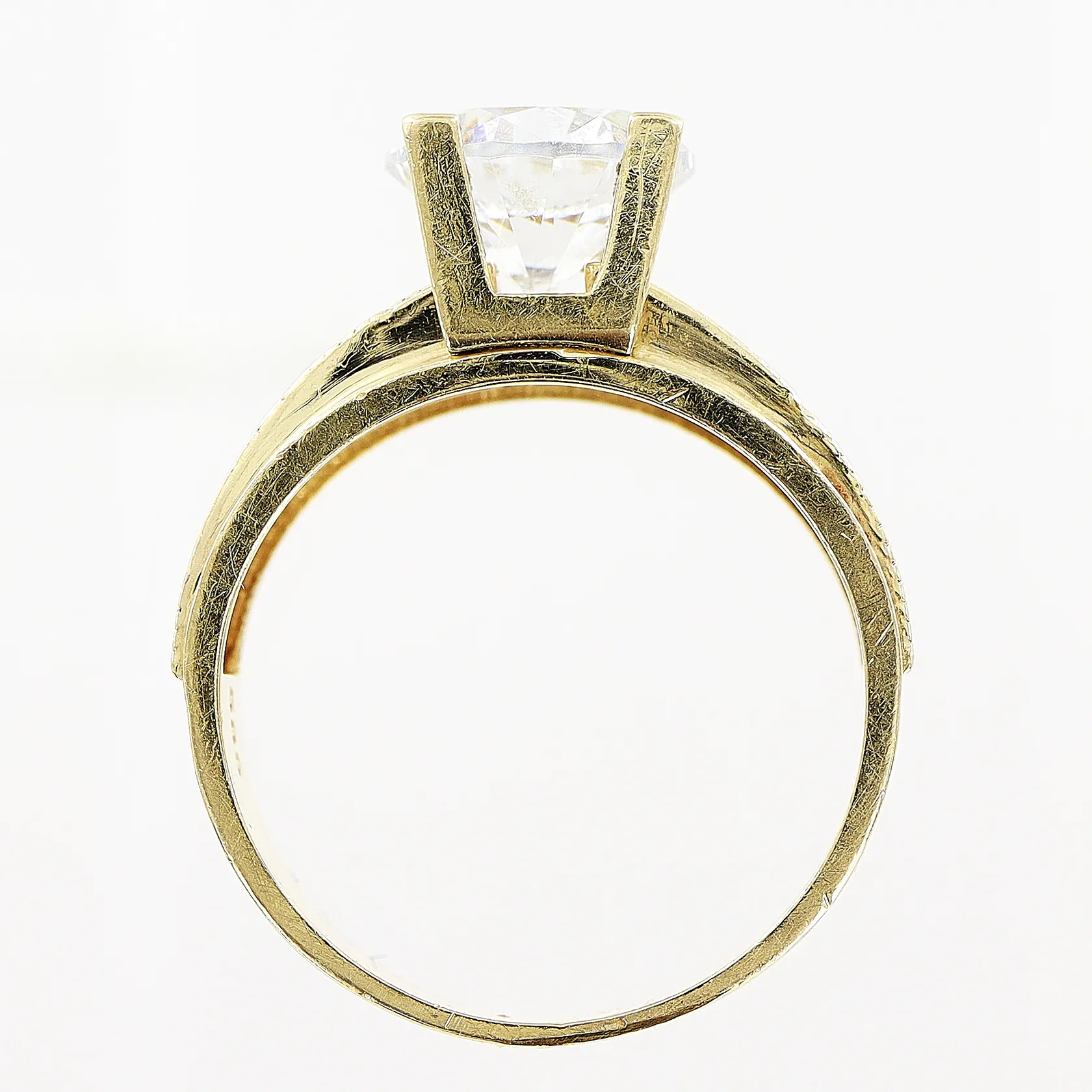 Ring med vita stenar, stl 15¾, bredd 3,5-7,5mm, 14K Vikt: 4,6 g.