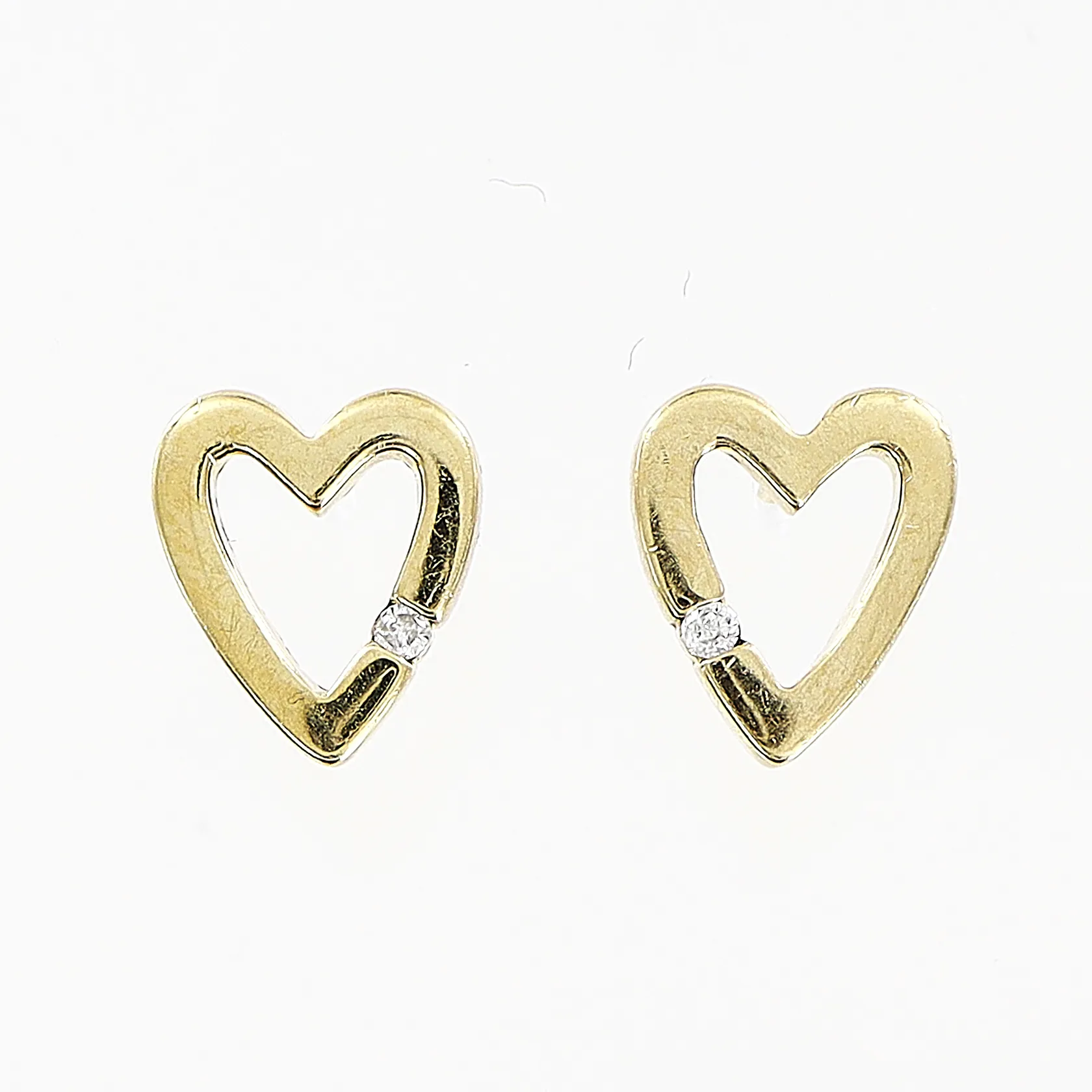 Ett par örhängen diamanter 2 x ca 0,01ct, hjärtan 8x9mm en stopp i gummi, 9K Vikt: 1,7 g.