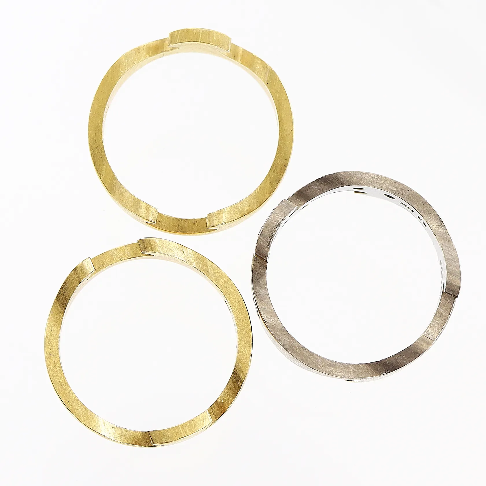 Ring Georg Jensen Fusion stl:17 (53) gulguld/vitguld/gulguld, mittdel med diamanter ca 0,20ctv, Nina Koppel, personlig gravyr i 2 delar, 18K Vikt: 15,5 g.